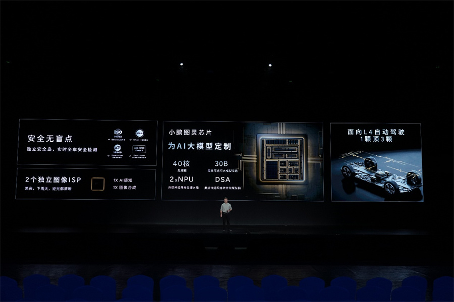 小鹏图灵芯片集成了2个自研神经网络处理大脑、2个独立图像信号处理器,拥有40核处理器,计算能力较现有芯片提升3倍,为端到端大模型提供了强大的计算支撑。