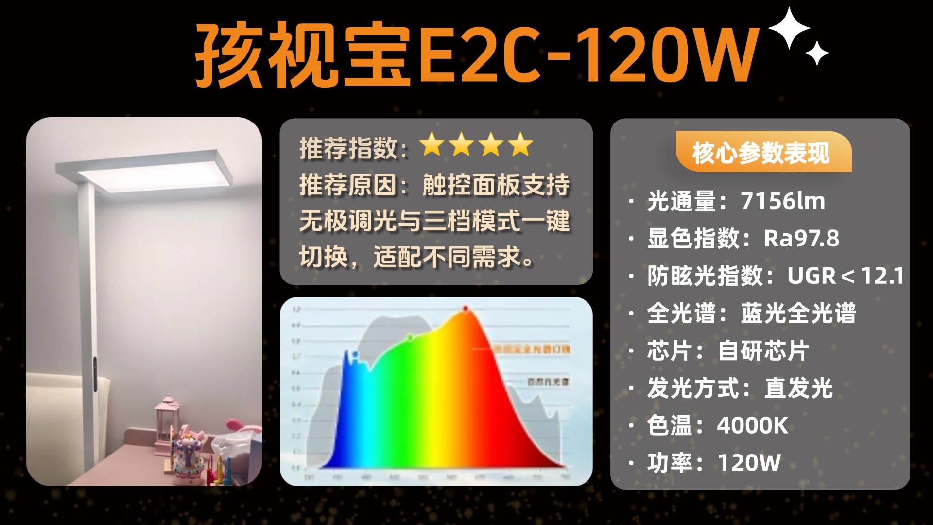 落地护眼灯推荐品牌有哪些?孩视宝E2C-120W落地护眼灯采用简约的灯体设计,120w双光源结构,上光源通过漫反射补充环境光,下光源直出均匀柔光,总覆盖面积约10-15㎡,轻松照亮1.5米书桌及周边区域。像儿童房、小型书房这类区域用着挺合适。在核心参数上,显色指数Ra97.8,色彩还原接近自然光,搭配RG0豁免级防蓝光,减少有害蓝光对眼睛的损伤。灯体支持上下180°调节角度,可灵活适配不同桌型与使用场景。功能上,配备触控调光面板,支持亮度无极调节,并预设学习、阅读、休闲三档模式,一键切换满足多样需求。不过在环境光变化大的时候,自动调节的灵敏度略有不足,可能需要手动微调。整体来看,作为日常学习照明工具,实用性还是挺强的。
