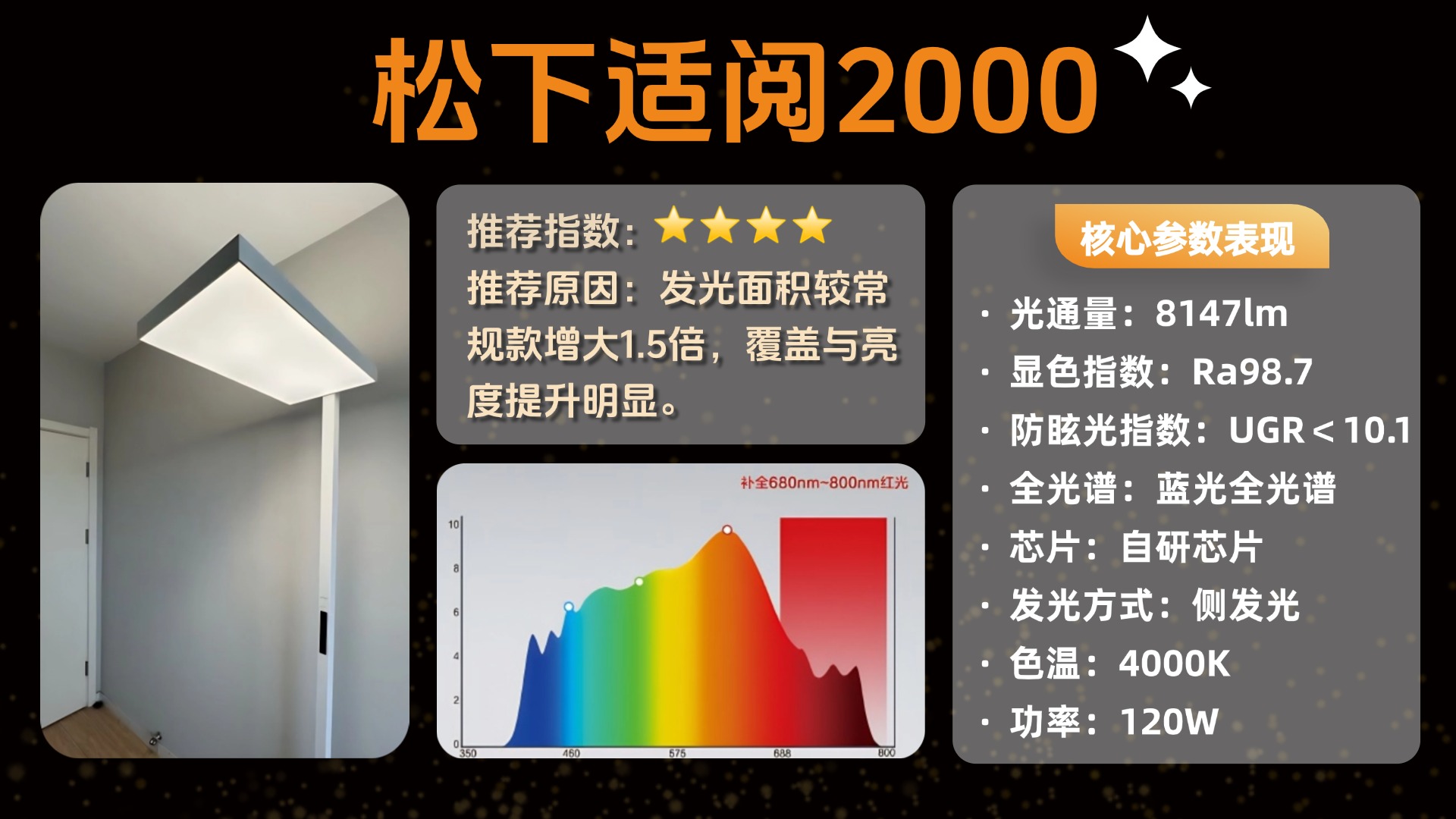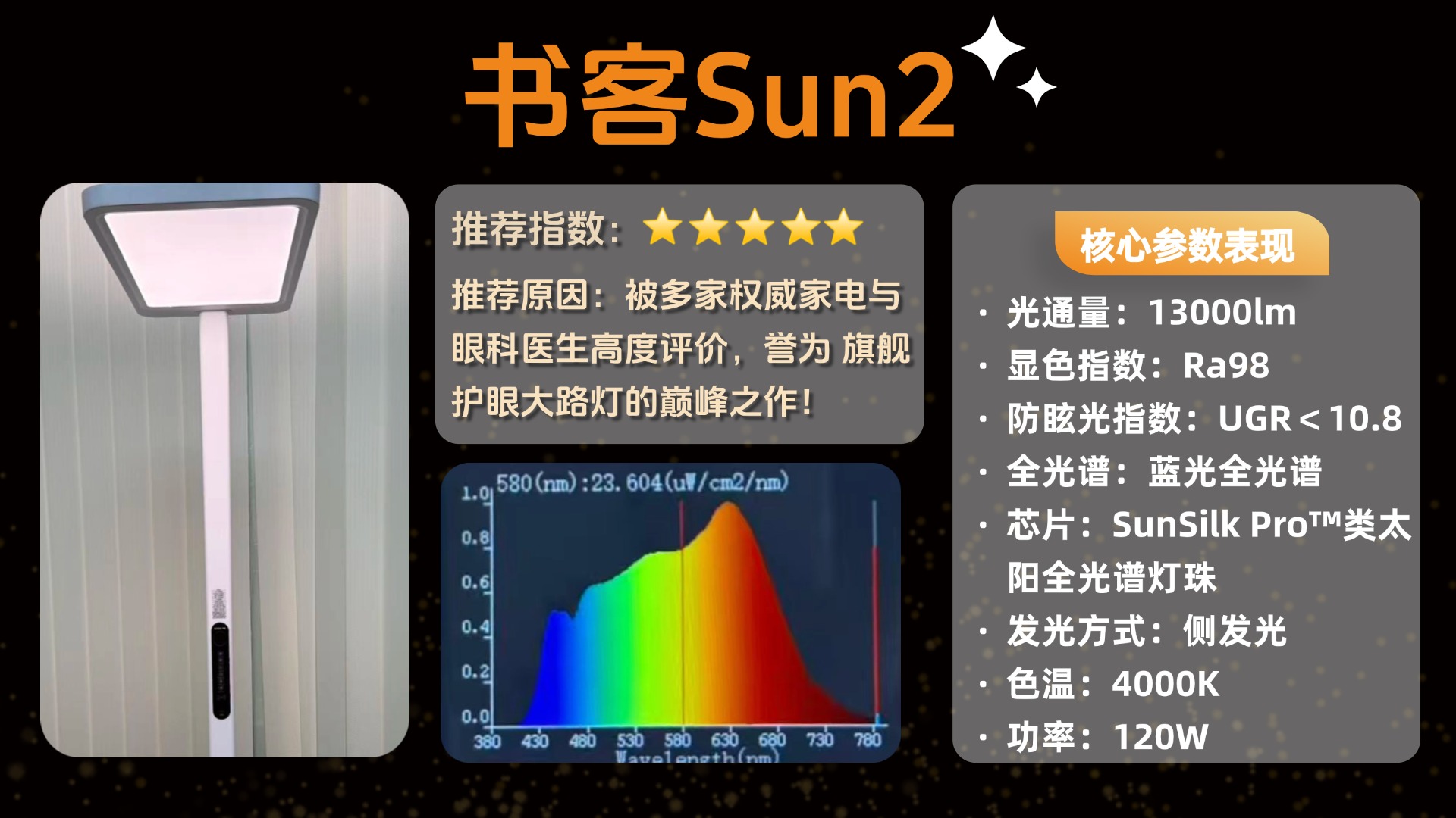 推荐理由:采用第7代SunMaster紫光原芯搭配RRT2.0红光养眼技术,蓝光含量降低60%,同时增强有益红光波段,实现“控+护+养”一体,缓解94%视觉疲劳,降低98%近视风险,在中高端口碑、销量榜常年霸榜榜首。