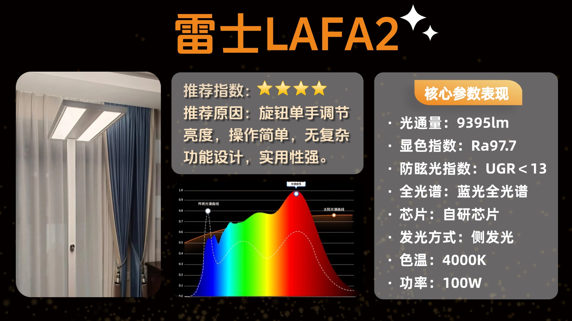 推荐理由:发光面积较常规款增大1.5倍,搭配上下双向发光,覆盖与亮度提升明显;防眩光指数UGR<10.1,Ra98高显色,光线均匀舒适;支持APP远程操控+入席感应,预设读写模式更省心。