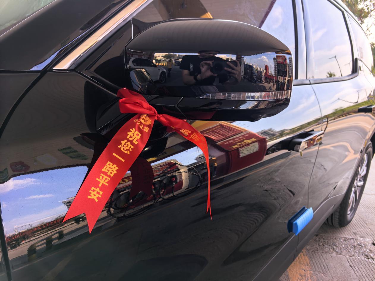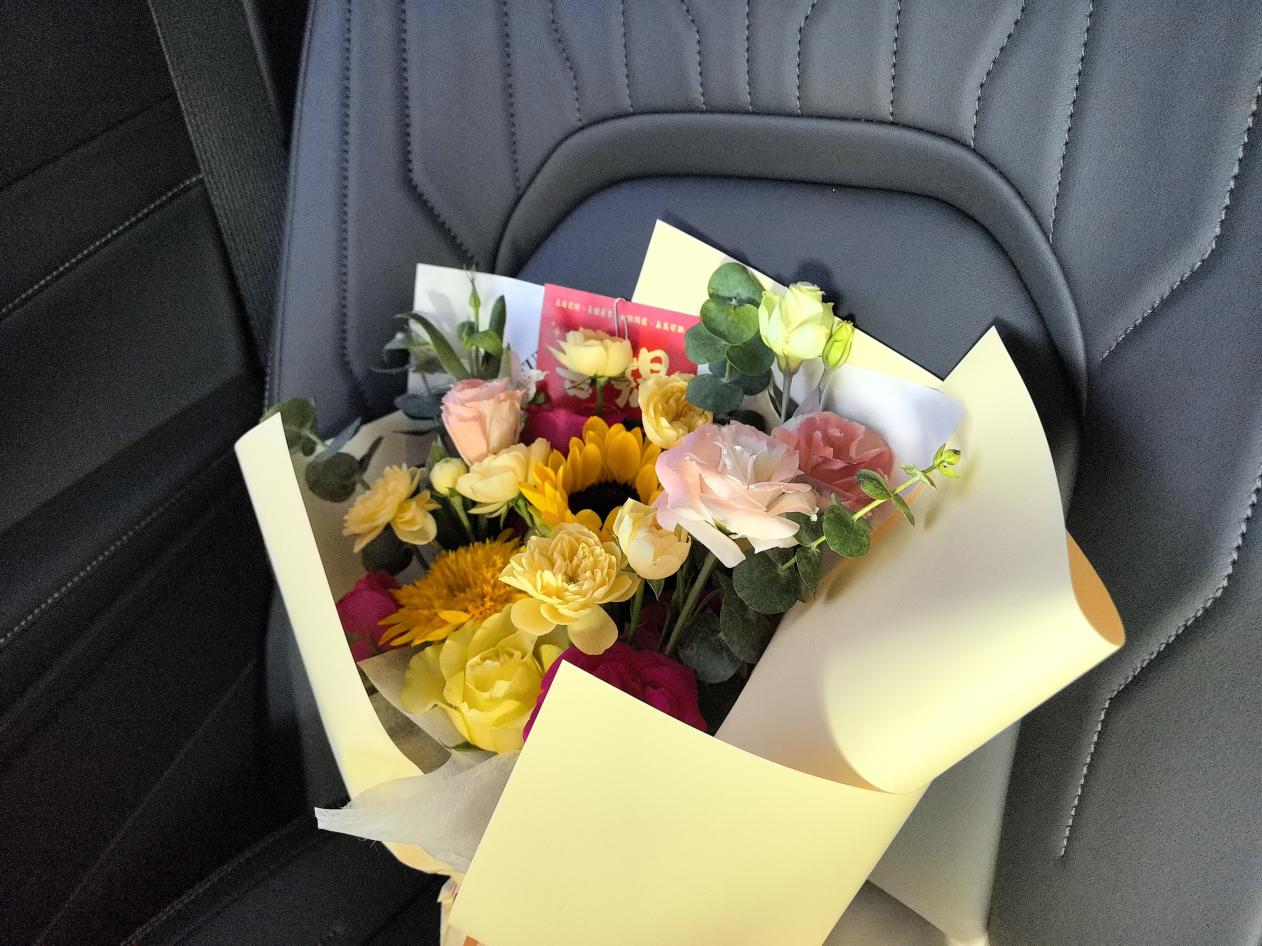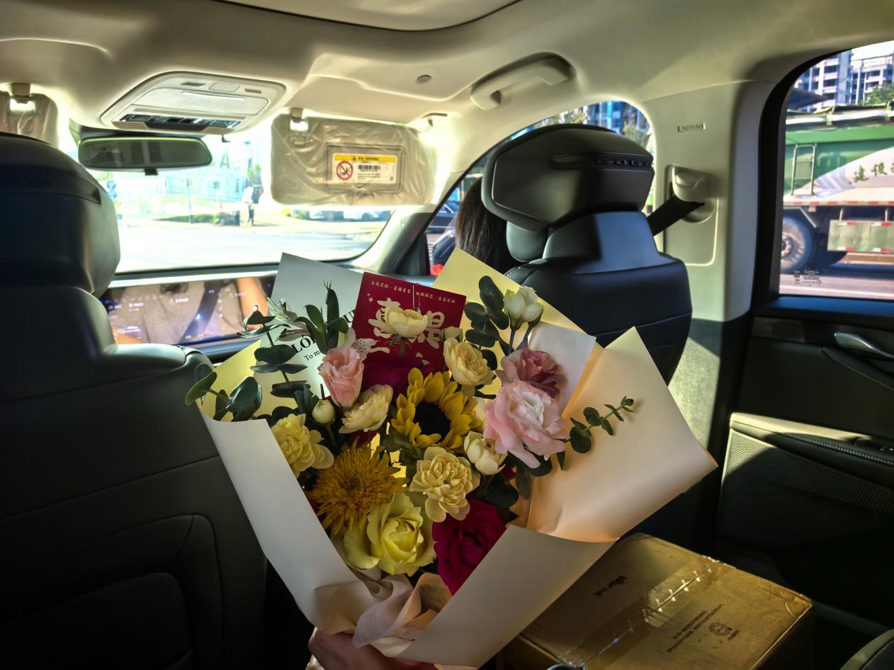 店里准备了个挺温馨的交车仪式,挂了红丝带,特意还给提车的媳妇准备了一束花,媳妇还是很满意,还送了一套露营套装,这简直是给我后续的自驾游神助攻啊,太应景了!整个流程很顺畅,验车、签字、讲解功能,一个小时左右就搞定了。看着属于自己的新车,心里那叫一个美。