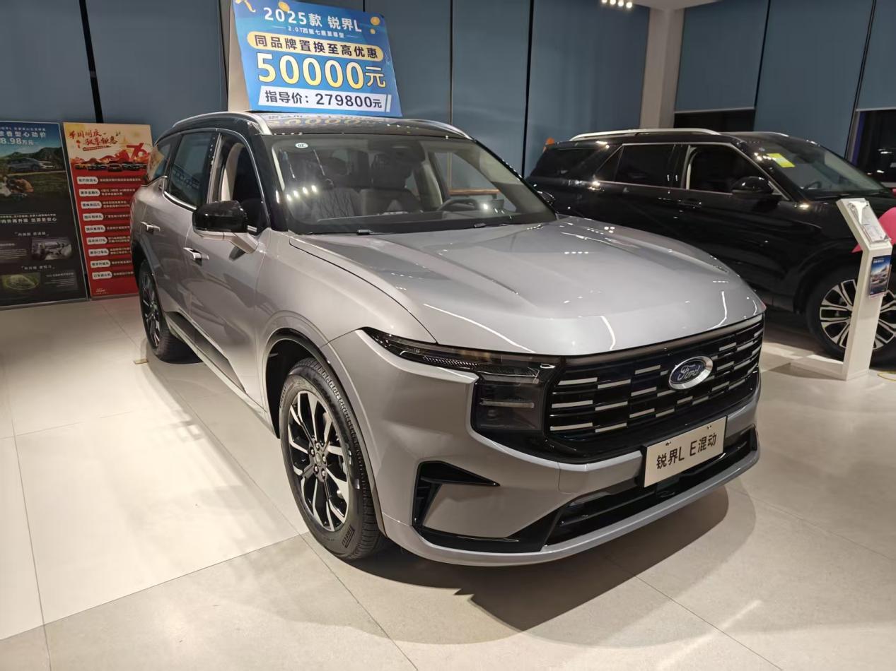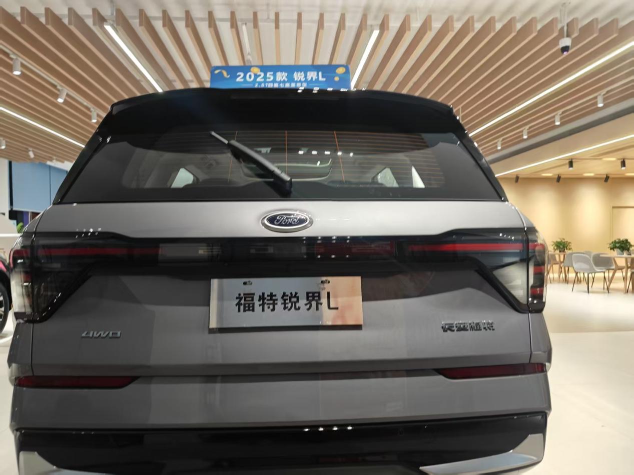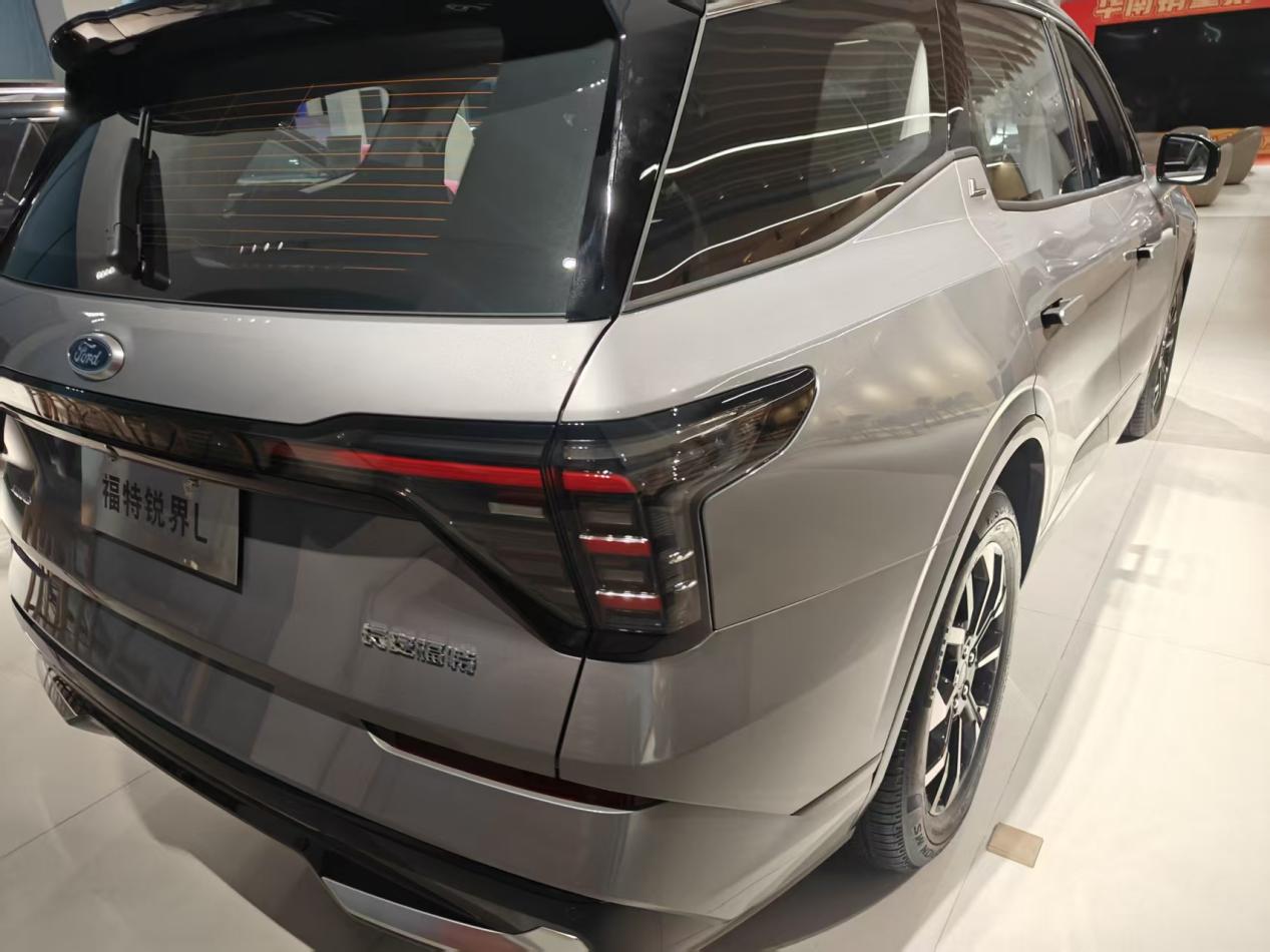 然后我去看了福特锐界L混动版。这车空间和途昂Pro大差不差,也都挺大的。它最大的优势就是这套混动系统了,油耗确实低,对于经常在城里开、或者跑长途多的家庭来说,能省下不少油钱,这点很实在。而且它的座椅布局有223可选,我个人挺喜欢这个设定,第二排是两个独立的座椅,中间有过道,进出第三排方便太多了,舒适性也好。