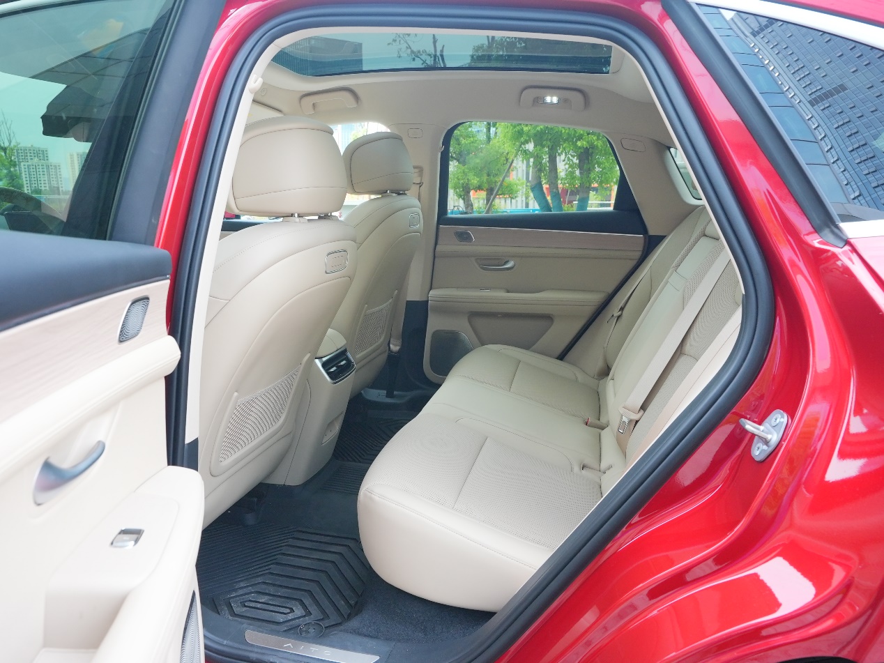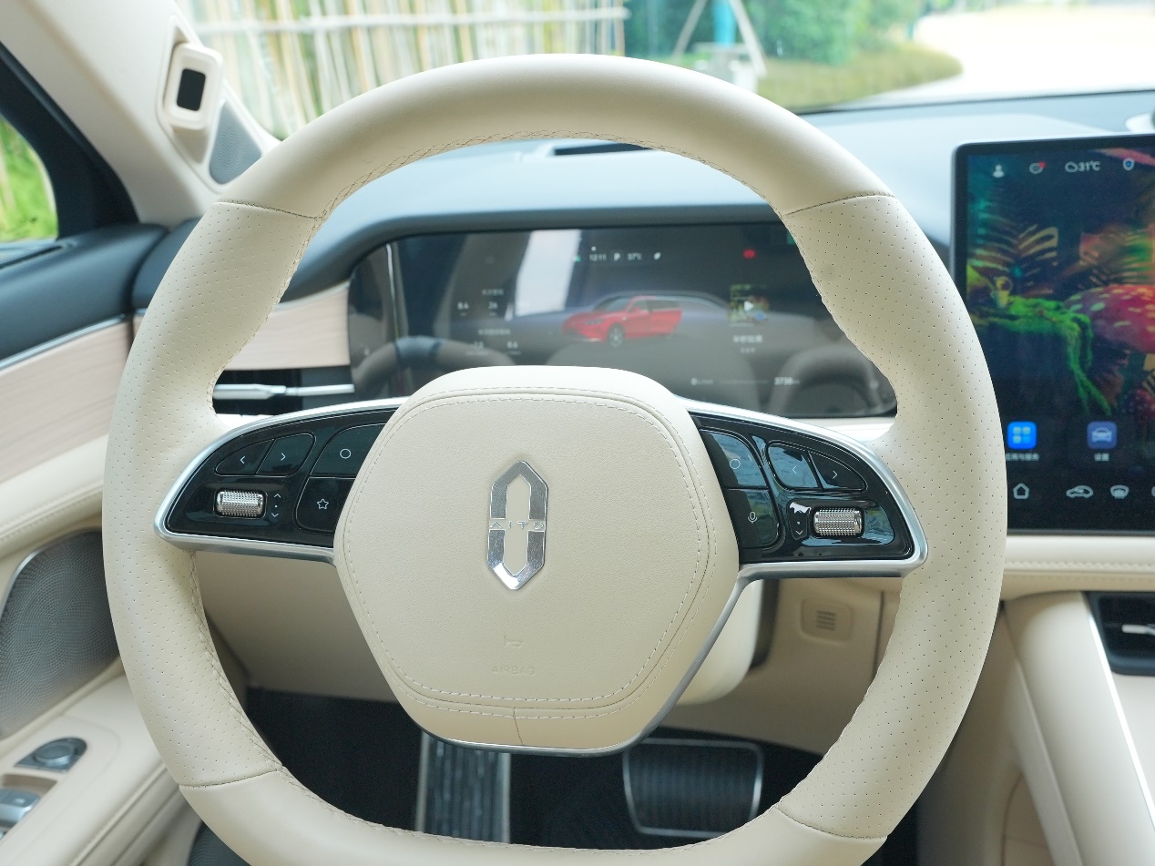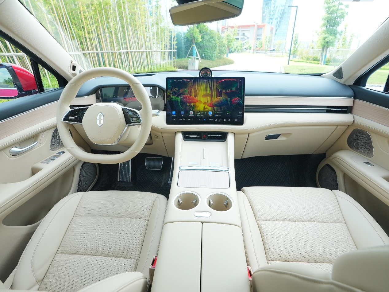 先夸夸日常代步的舒服劲儿,市区开着是真轻快,虽然车长快4米8,但方向盘指向精准,低速挪车、挤老小区车位都灵活,过弯道时不用来回修正方向,方向盘基本没有虚位,开着很有信心。我媳妇这种拿证三年没怎么开车的新手,自己开都没啥问题。底盘很有韧劲,过小区门口的减速带时滤震干净,不会有多余弹跳让娃哭闹。最惊喜的是静谧性,纯电模式下带娃出门,娃在安全座椅上能安稳睡着,增程器介入时会有轻微声响,但不突兀,关着窗基本听不见。在高速上也没啥风噪,后排老人跟娃说话不用扯着嗓子,开着轻音乐刚好能盖过外界杂音。