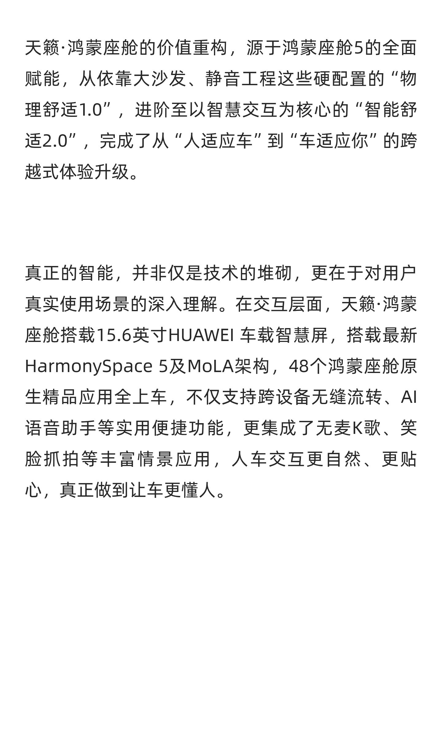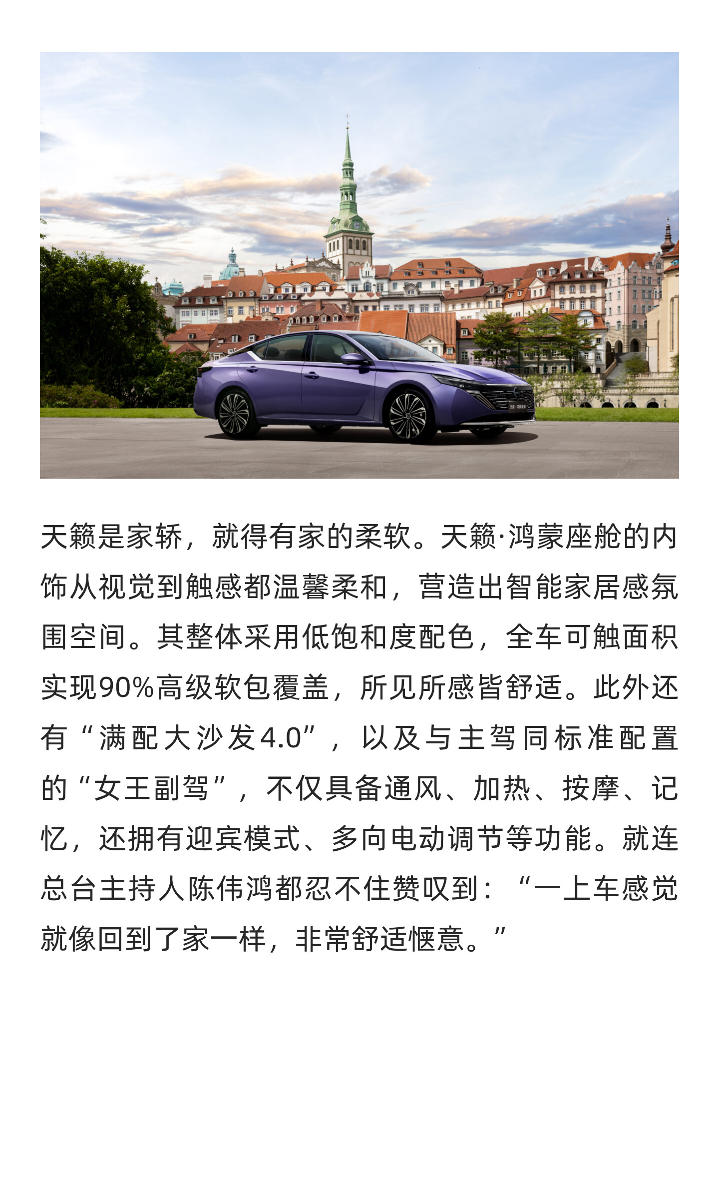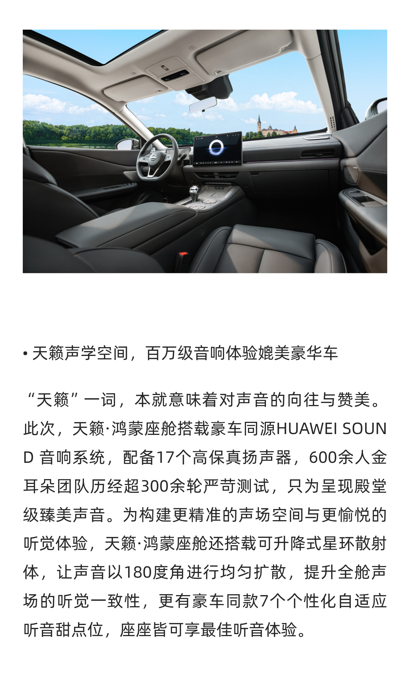 作为全球首款鸿蒙座舱燃油车,天籁·鸿蒙座舱以智能家居空间、智慧交互空间、天籁声学空间三大亮点,积极回应用户期待,成功树立起“燃油智能第一车”的全新价值典范。