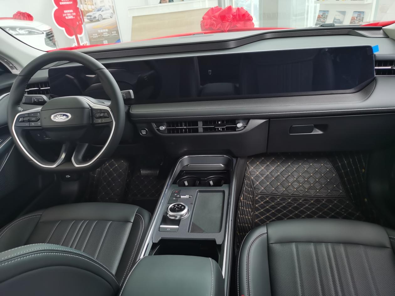 一进4S店大门,就看到展厅正中央停着一台黑色蒙迪欧,比网上图片显大不少。销售小哥很热情,没上来就催着介绍,先让我自己围着车转了转。前脸的大尺寸进气格栅特别扎眼,搭配LED大灯,看着比同价位的日系车更有运动感,不像有些车总给人老气横秋的感觉。车身线条很流畅,溜背造型一点不臃肿,我183cm的身高,站在车旁边也不觉得压抑,这外观我先给个8分!