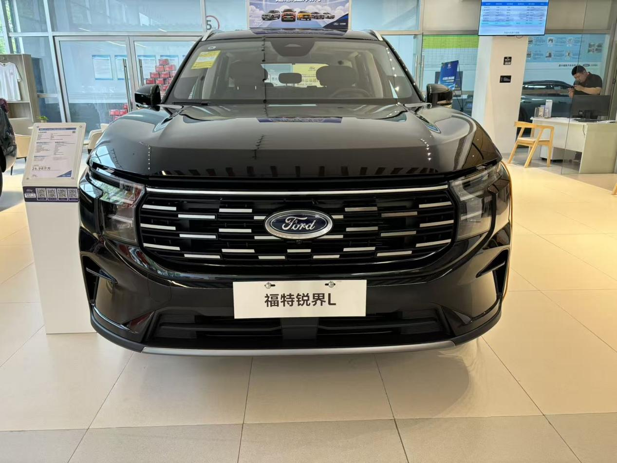 店门口就停着一辆主打的车型,是燃油版的豪华型。第一眼看上去,这车真挺显大的,块头足,气场不输。外形设计我觉得是福特近年来的路子,挺时尚,也显年轻,不像有些车显得老气横秋的。销售说26款外观没啥大变动,我对比了一下之前看的图片,也确实,主要变化都是在里面的配置上,这点后面细说。