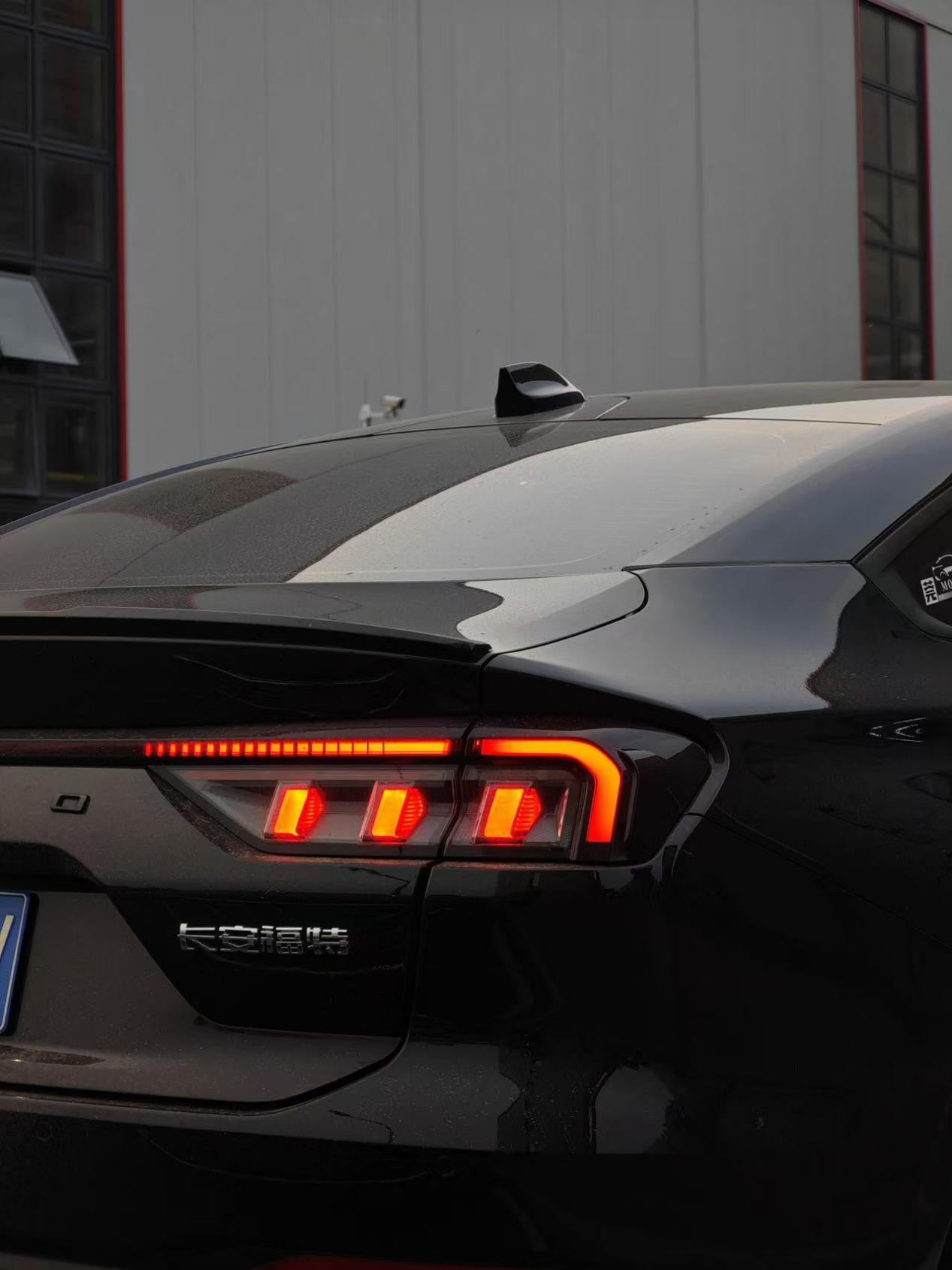 中途在服务区休息时,发小还在夸我的车帅气,毕竟2.0T燃油版蒙迪欧ST-Line的外观确实扎眼。大尺寸的进气格栅,搭配犀利的LED大灯,再加上红色的刹车卡钳和运动轮毂,尾灯和野马是同款,三柱型特别有辨识度,整个车看起来特别有气势。