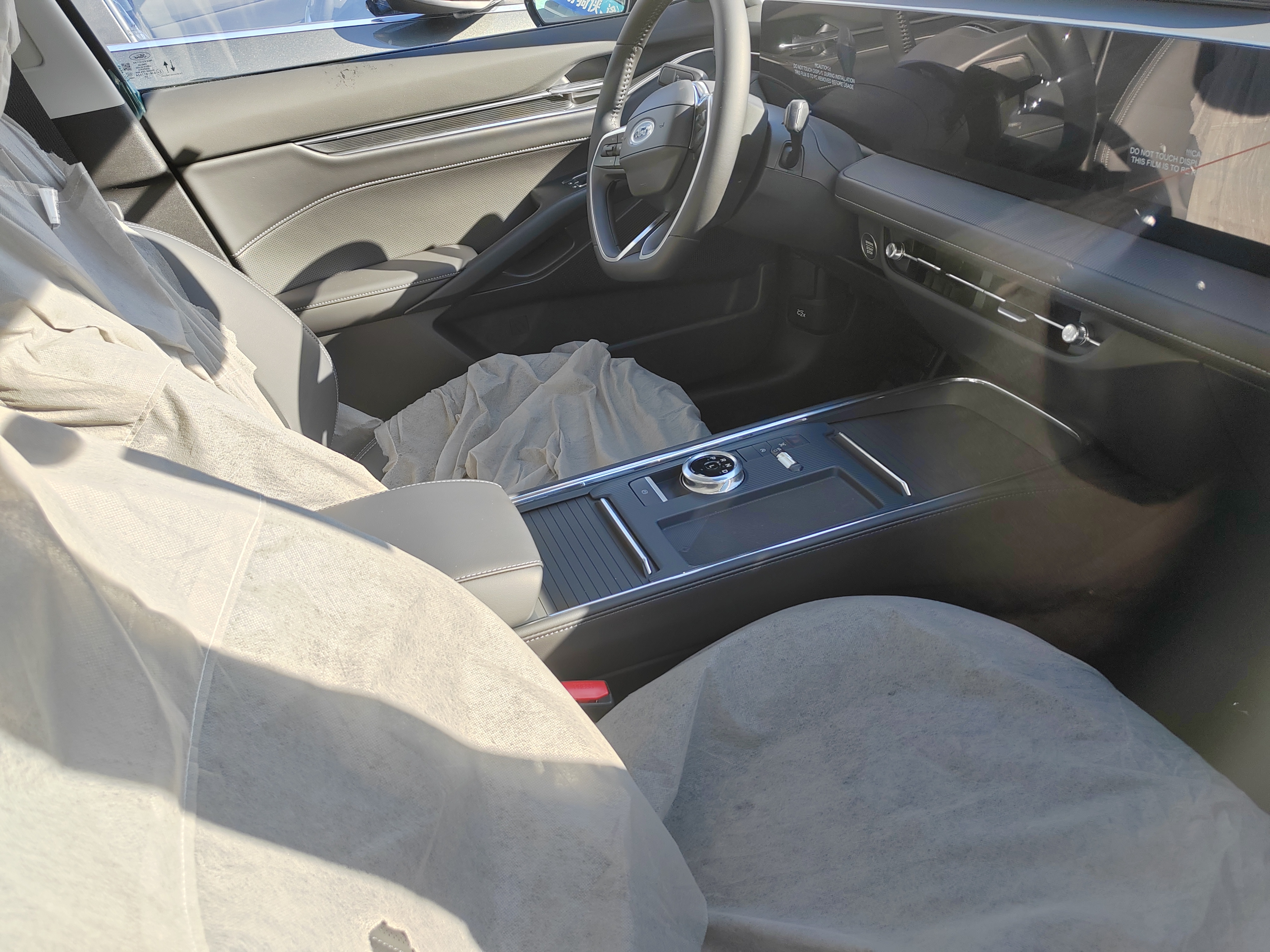 坐进车内,最显眼的就是27英寸的大联屏,跟家里的平板似的,清晰度特别高,导航的时候地图显示得很清楚,还能分屏操作——我开车用导航,老婆在副驾看视频,互不影响。