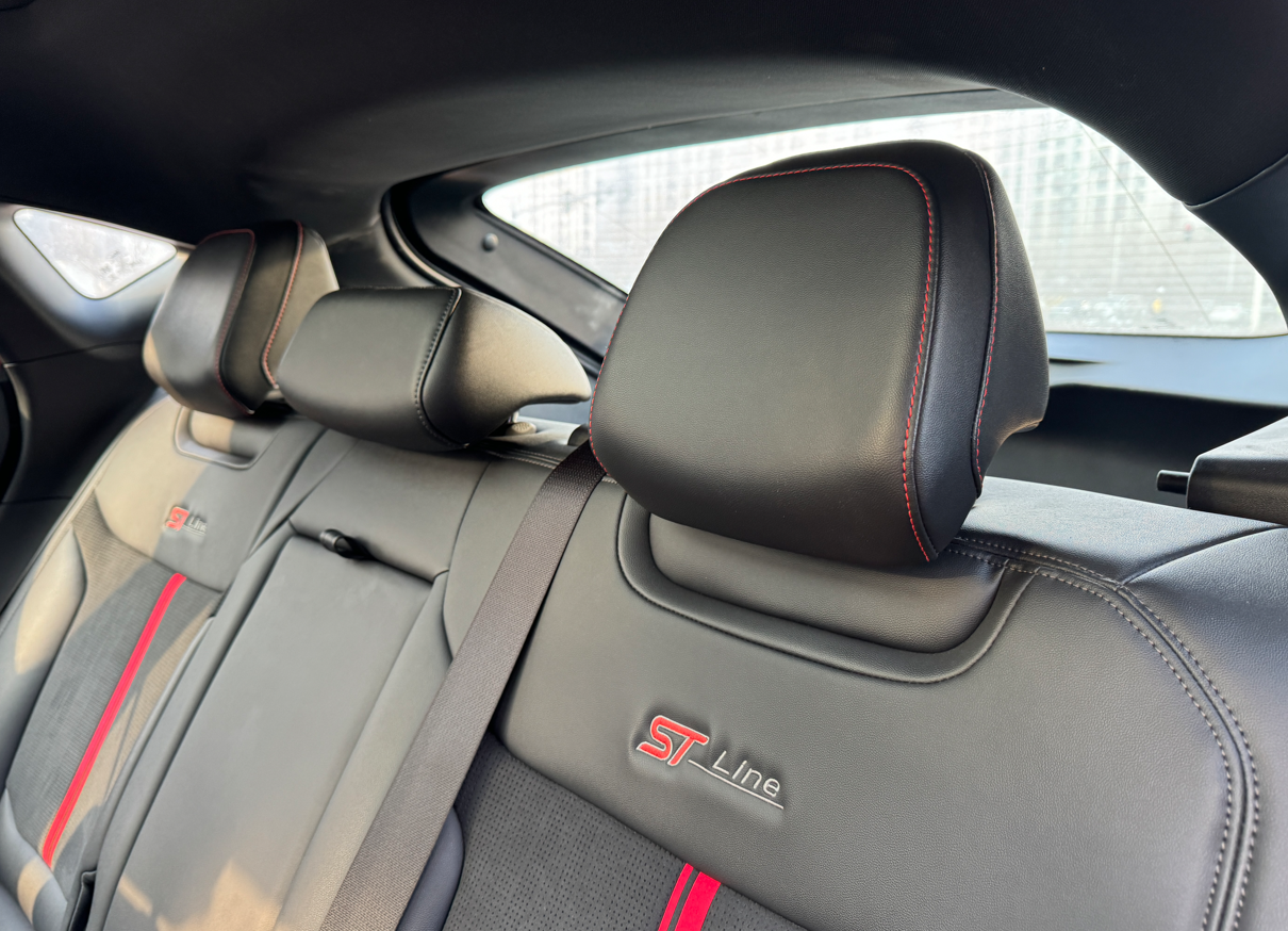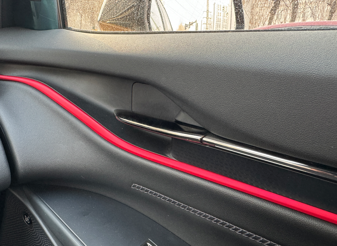 内饰质感也在线,运动方向盘握着手感好,皮和翻毛皮混搭的座椅坐着舒服。另外我还很喜欢它的空间,这块是真越级,2945mm轴距摆这,我180cm身高调完驾驶位,后排爸妈带娃坐着宽敞,他们膝盖离前排两拳多,中间地台几乎纯平,三个人坐着不拥挤,不压抑。