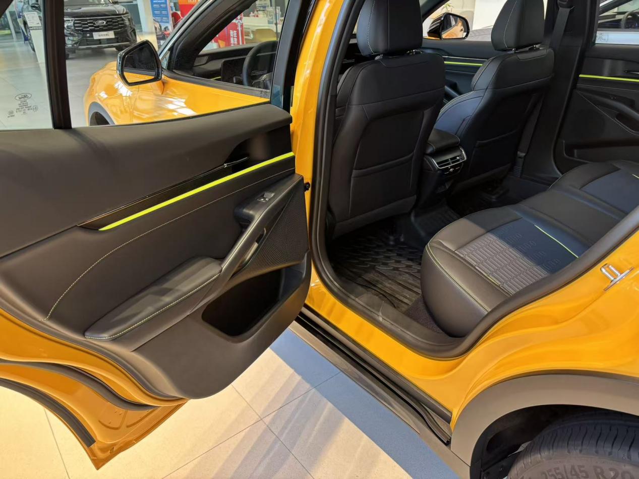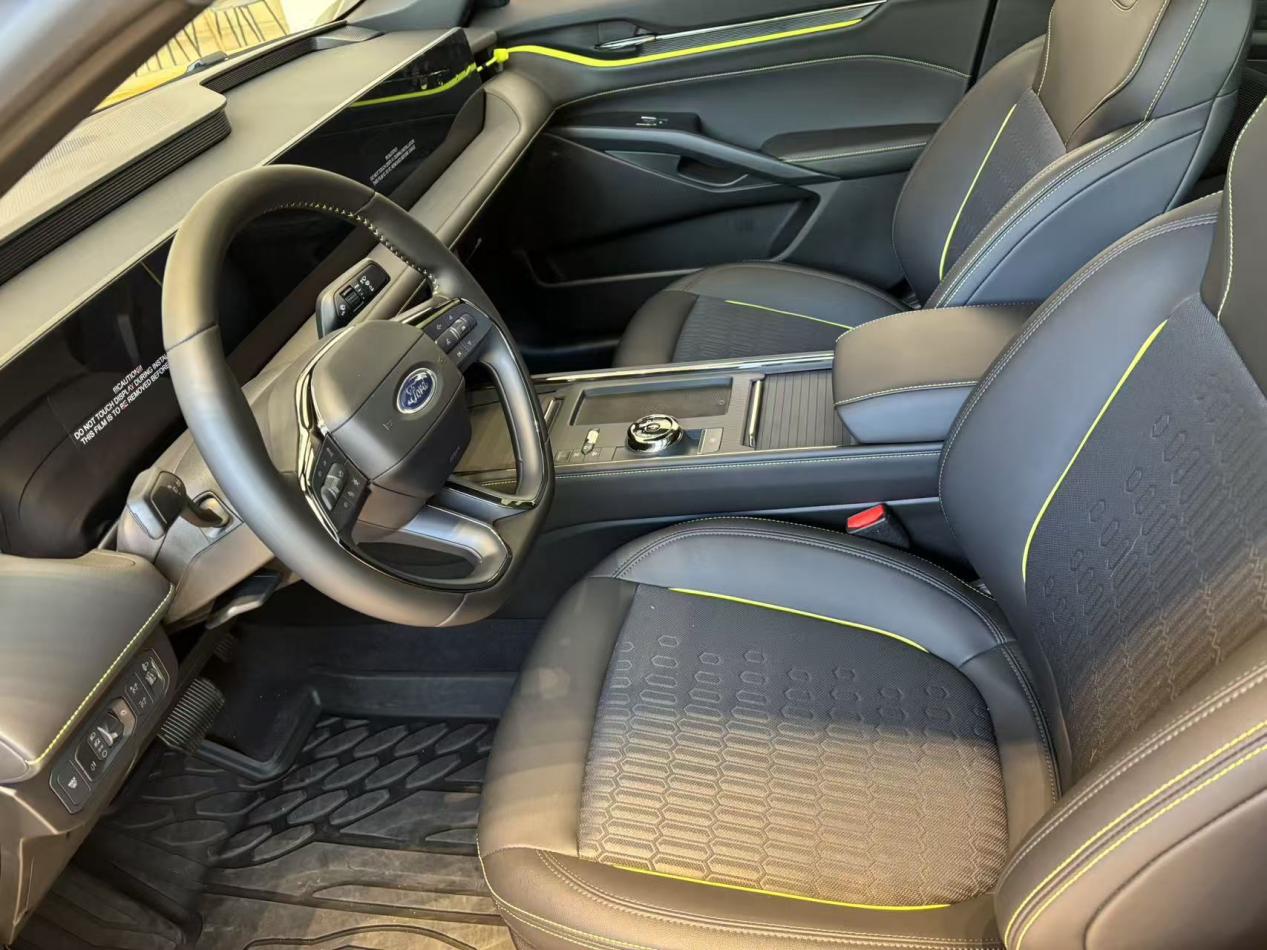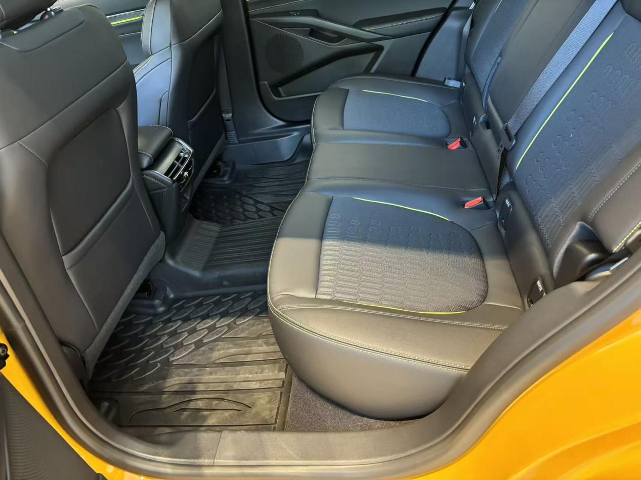 重点说试驾感受!动力真的超出预期。数据上来看,综合马力308匹,标准模式起步特别平顺,发动机介入几乎没感觉,市区堵车开着不费劲;切换到运动模式深踩油门,推背感瞬间上来,红绿灯起步基本能甩开旁边的车,零百加速5秒多不是吹的。高速开到120km/h 车身也不飘,变道超车特别稳,悬挂调校得不错,过减速带的时候颠簸过滤得很柔和,不会颠得腰疼。不过胎噪确实有点明显,开音乐就能盖住,影响不大。