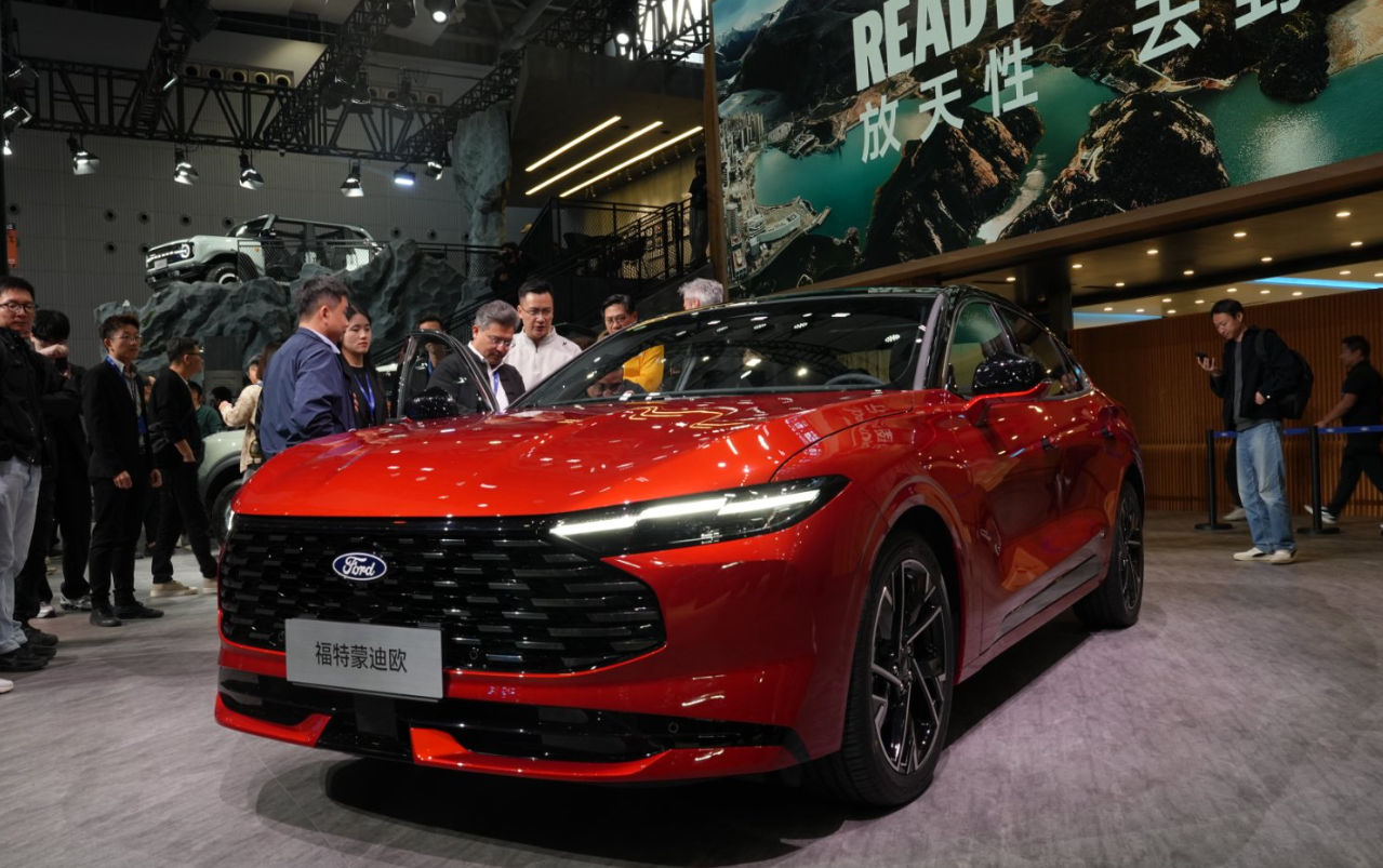 今天专门去看了新款蒙迪欧,第一眼就被颜值吸引!外观真的越看越喜欢,赤霞红配色特别显高级,低趴宽体的造型看着大气又带点运动感,立体梯形格栅加上三柱型尾灯,把美系肌肉车的感觉完全体现出来了。