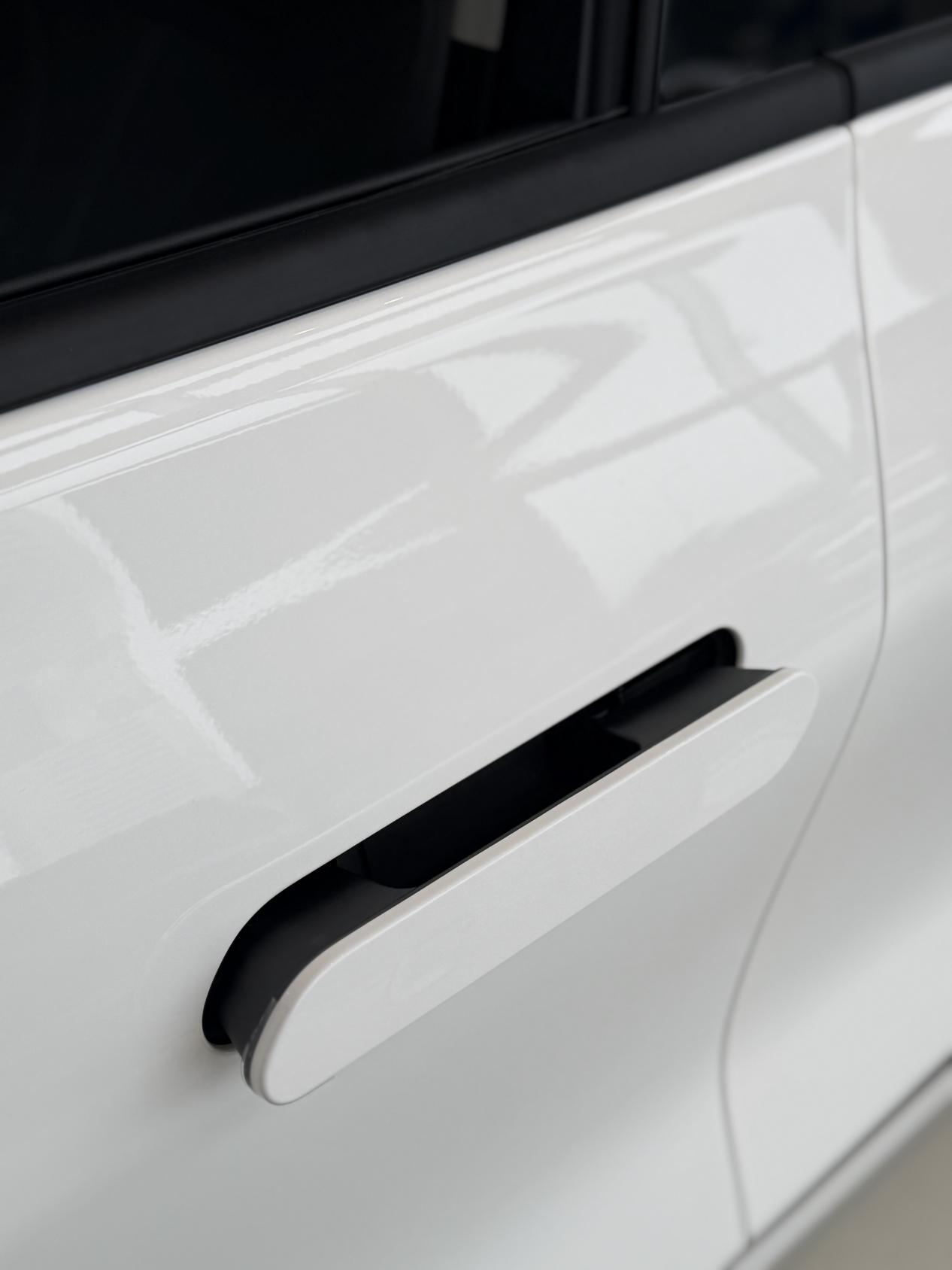 车身侧面的隐藏式电动门把手太加分了,关门后车身线条超平整,跑高速风阻也小,关键还是半机械式的,也不怕遇到特殊情况的时候打不开。