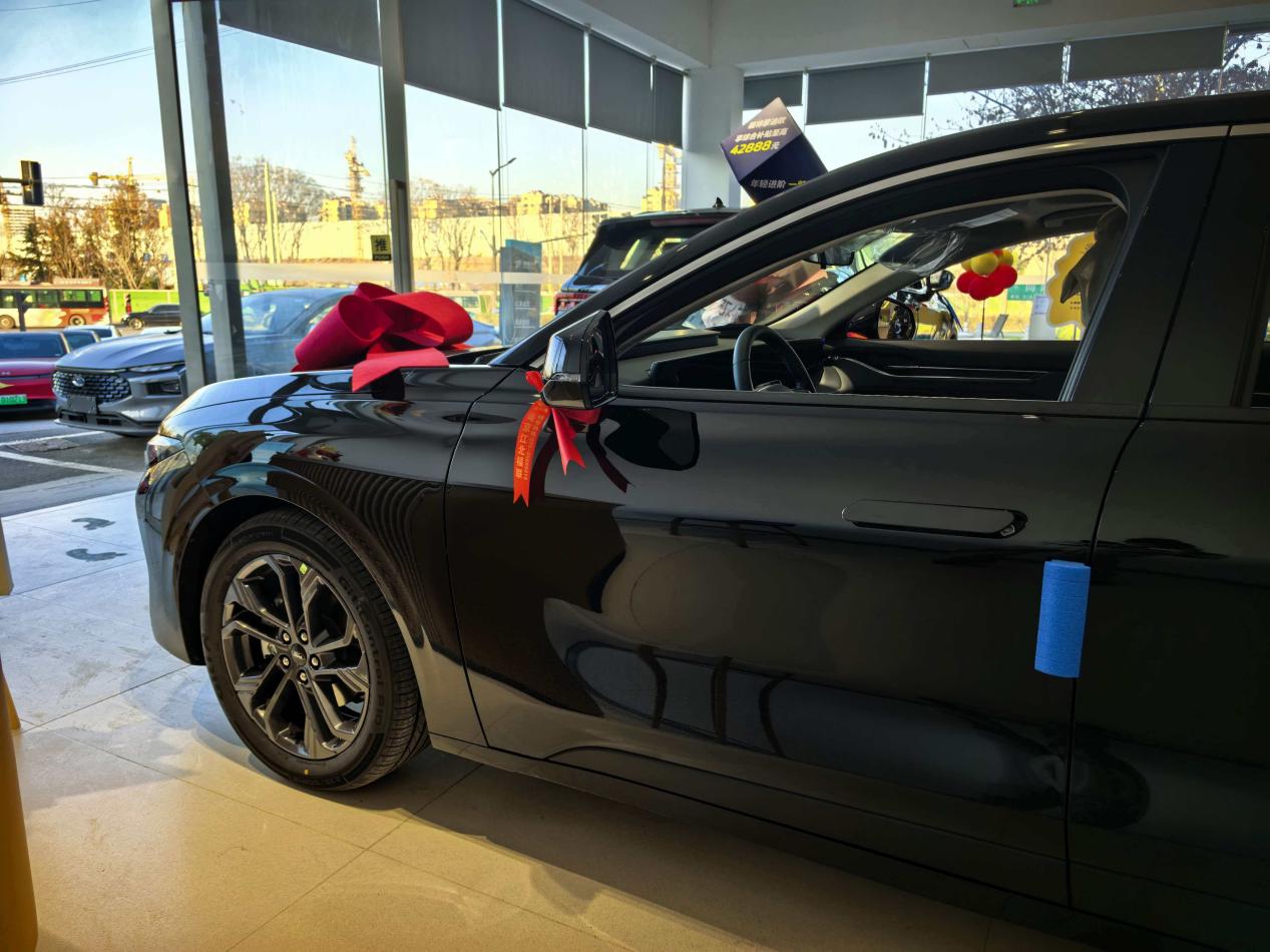 为了能在元旦提车,提前半个月就跟销售磨好了,反复确认“元旦当天必须能交车”。今天一早就到了4S店,销售小哥已经把车洗得锃亮,还简单布置了下交车仪式。跟懂车的发小一起去的,验车环节不敢马虎,绕车三圈检查漆面,车门边角、轮毂这些容易有划痕的地方都仔细看了,确认没毛病;再看副驾门框的铭牌,生产日期是12月的,新鲜热乎的非库存车,轮胎和玻璃日期也能对上,放心了一半。