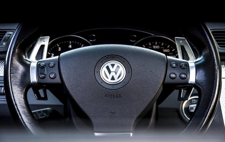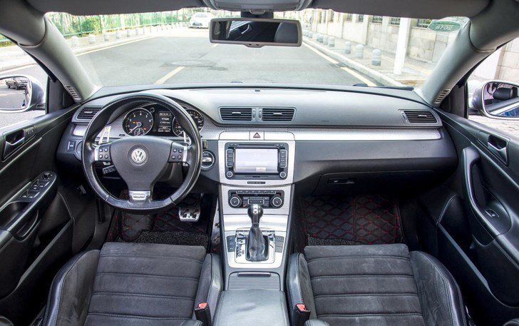 多功能方向盘在这样级别的车里肯定必不可少,方向盘上的换挡拨片被车主加大了尺寸,当然只是贴上去的,不过也为室内营造了浓浓的战斗气息,同时R36的标识也被印刻在了方向盘的正下方,时刻提醒着驾驶者它是R36不是迈腾。
