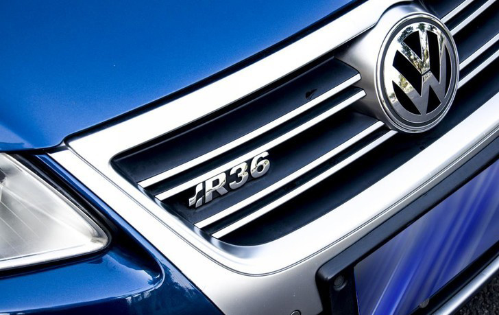 前脸和迈腾最明显的区别莫过于亚光的中网格栅,以及R36的标识了。