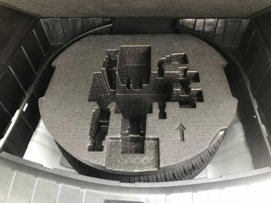 备胎上覆盖泡沫盒,用于装工具,每个工具都有固定位置,对止震有良好的效果。