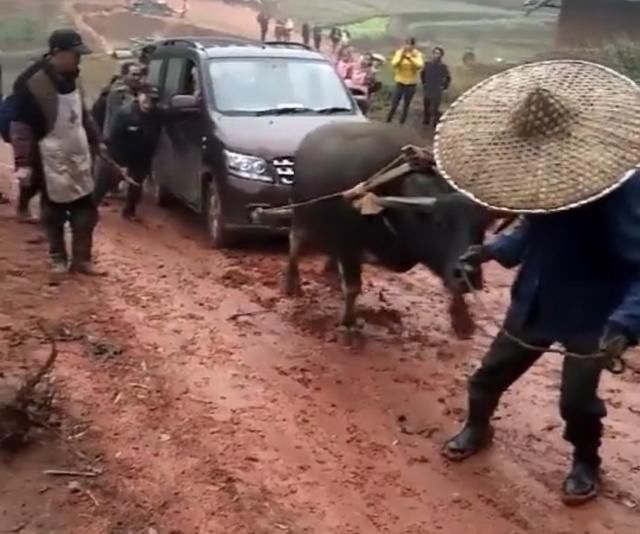 上图今年年初发生的事,在城里买了车,过年开回乡,遇到下雨,烂泥路走不了,前面上大水牛来拖,后面又是十几个人来推。。。。。。乡亲们和大水牛是很热情,就不知道车上那位司机哥哥肿么想,劳民费劲呐