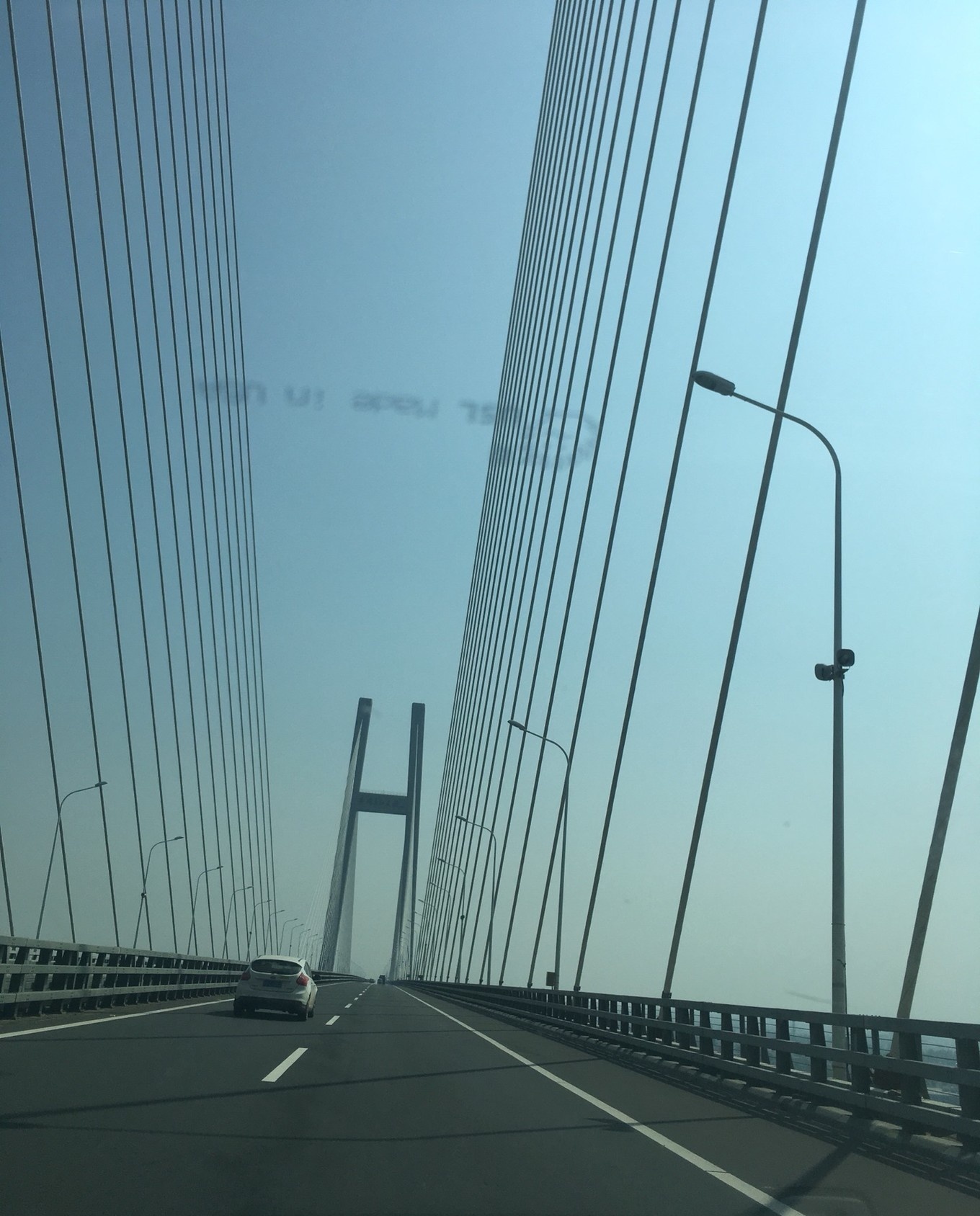 大桥立于天地间,我嘉喜从桥上过,驰骋的快感,尽在油门与速度的转化间,无痕流畅,有轨道般的轻快,甚欢甚欢呐