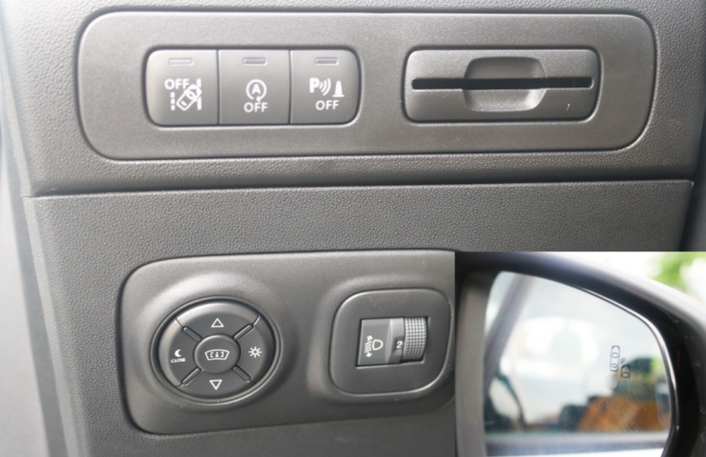下面一排:调HUD抬头显示的,大灯高度调节的,最右边是倒车镜上的盲点监测,功能多到没朋友,目前我参考得最多的就是盲点监测,路上并线好用