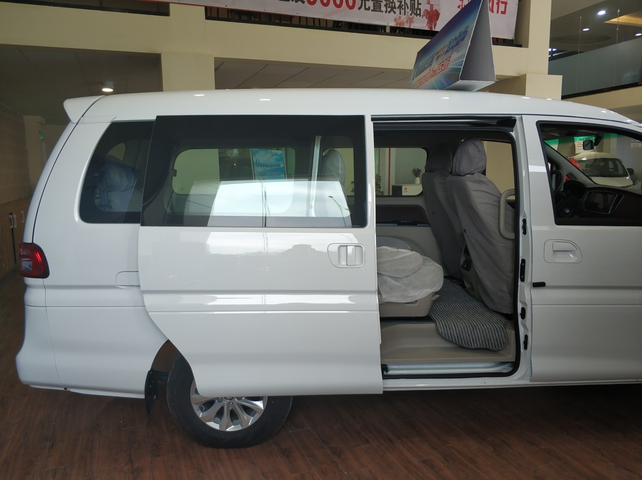从侧面看就能知道这车有多大了吧,妥妥的7座车,我估计9座都可以了,侧开门的设计很方便,而且这个门做得很大,上下车很轻松。