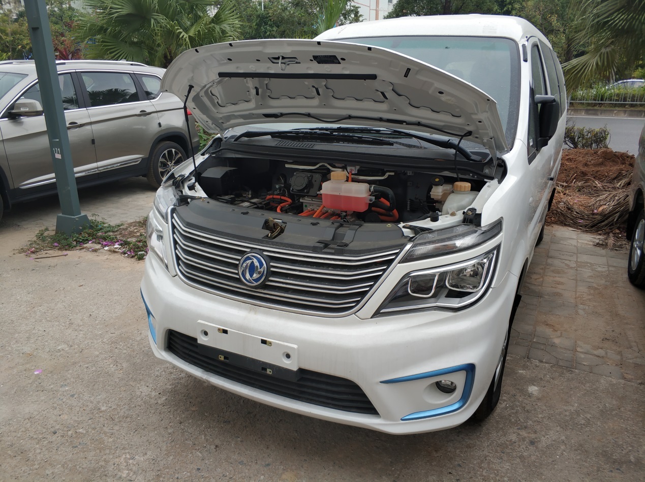 菱智M5EV是一款纯电动的车,机舱里面的不是汽油机,是一台电动机和一堆电子零件。