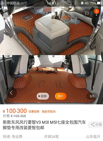 前几天在网上订的全包围脚垫,到了铺上之后就可以肆无忌惮的拉货了。