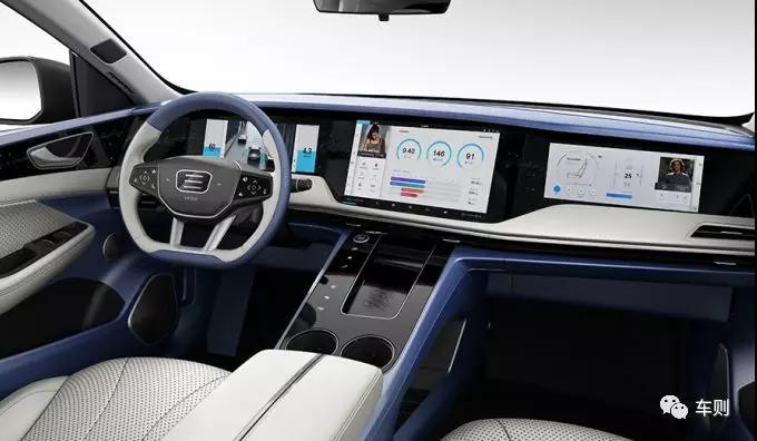 ME7前排拥有3块大尺寸高清屏幕,构成长达1460mm的整体图像显示区域,中控超大屏尺寸达15.6英寸。