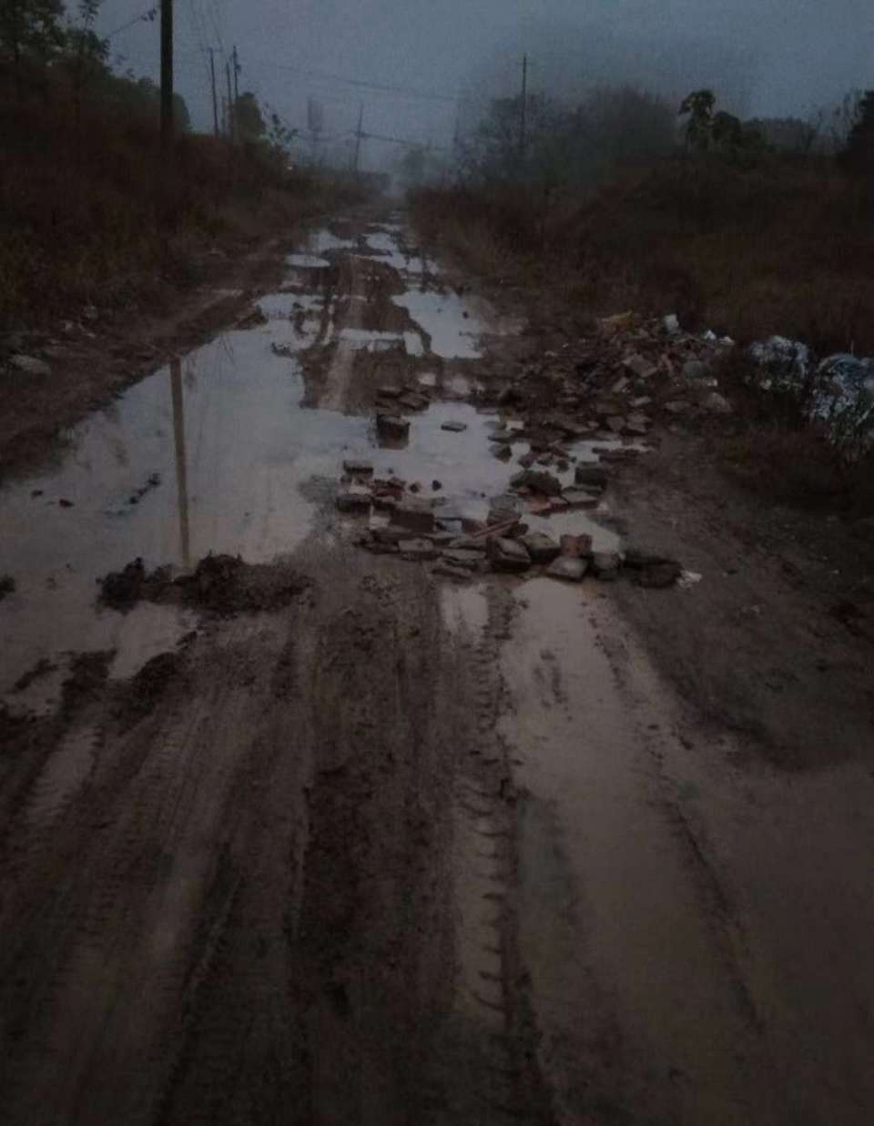 这是我通往我老家村里的一条路,牌楼段国道347旁边,通往牌楼村4组的,一到雨天就是烂泥。放眼一下: