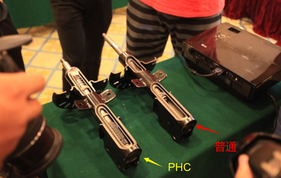 一个普通的减震器和PHC减震器,我在网上找来的图,看构造吧,内在就是不一样