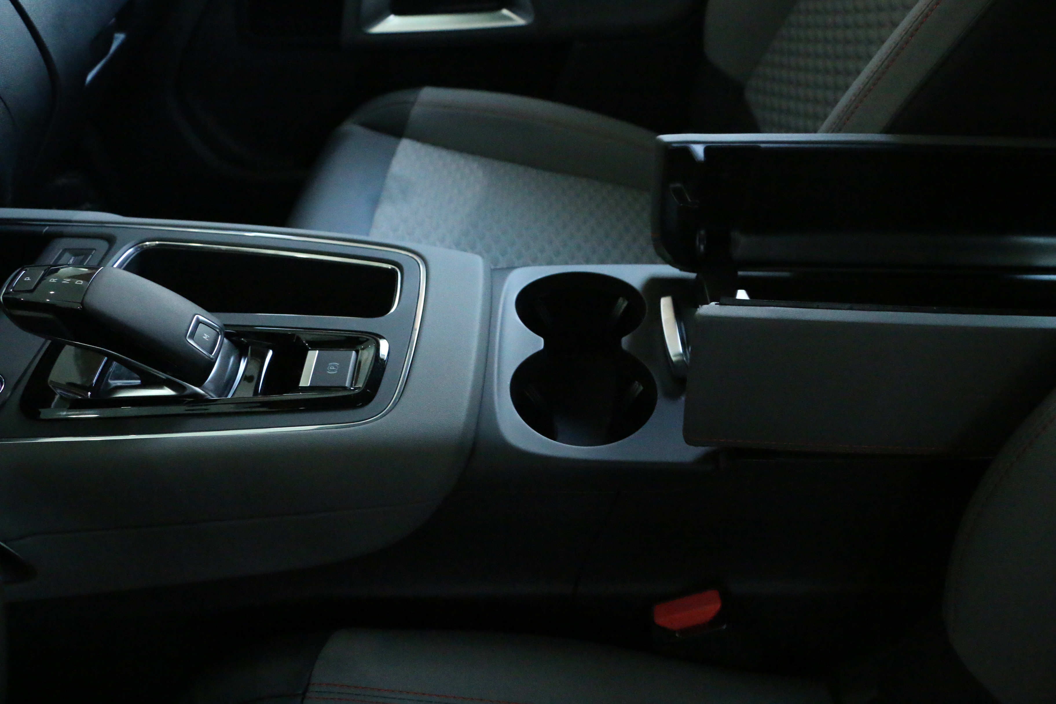 双杯架后面是空间比较大的对开手扶箱,这块的小空间挺足
