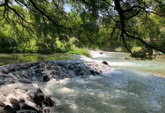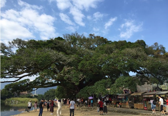 溪岸边都是由13棵百年、千年老榕组成的,最大一棵的老榕树,要10多个大人才能合抱,也是很多