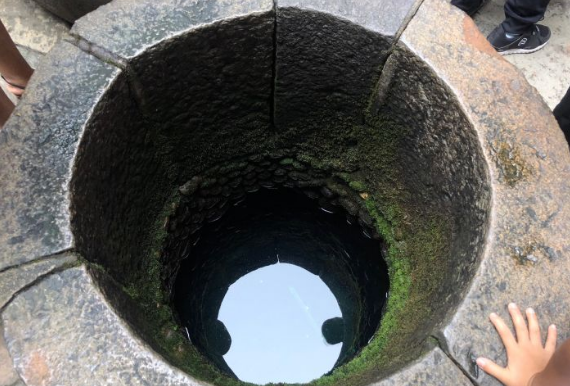 楼中两口水井,俗称“阴阳井”相距有十八米,左边那口井,清亮如镜,而右边那口井却混浊发黄。