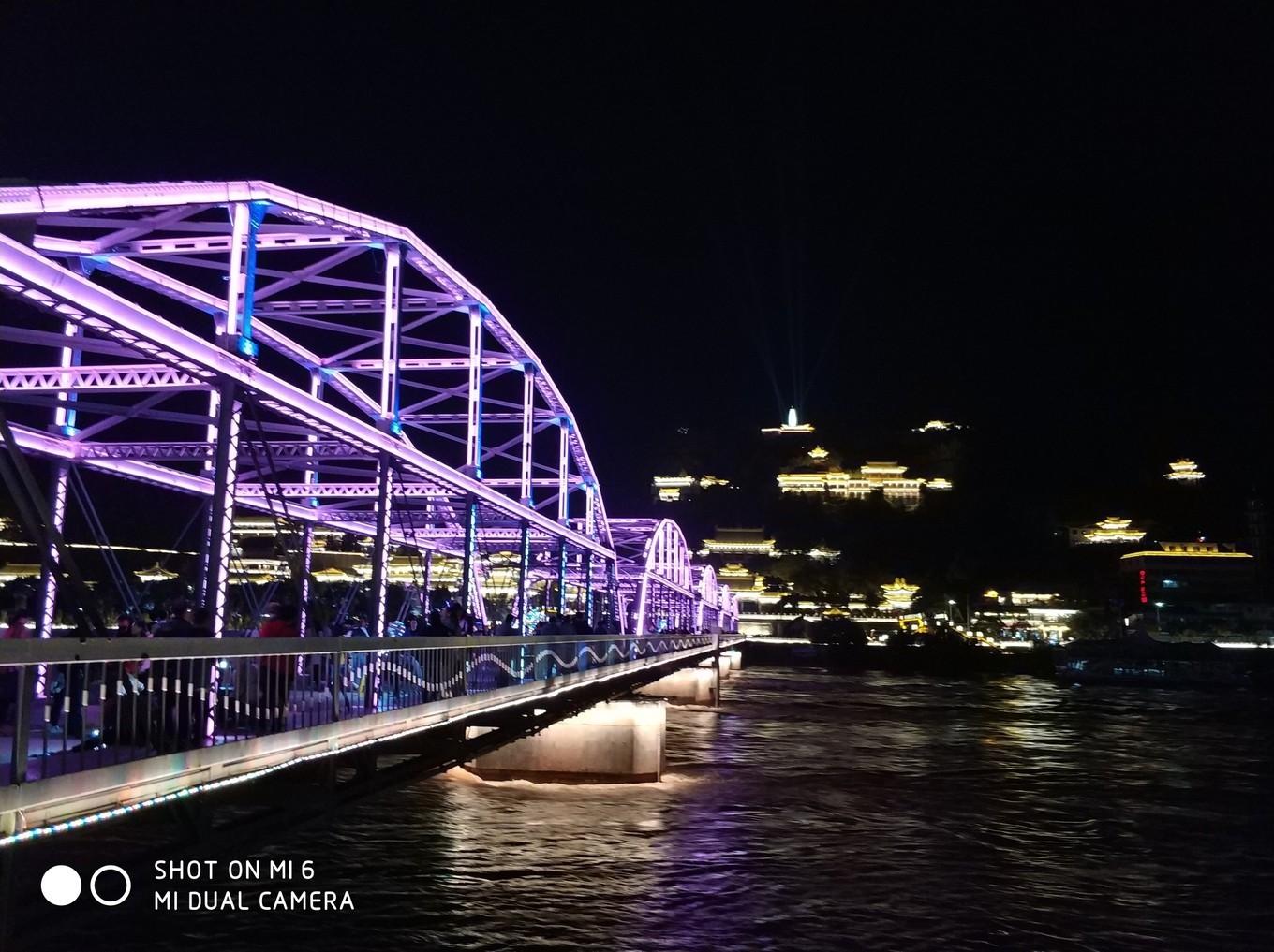 我这次住宿就选在小西湖边上,主要是方便。停好车,放好东西,连饭也没吃,就追随着黄河的气息,来到中山桥。美不美各位就自行判断了,我想抑制我的抒发,腻!