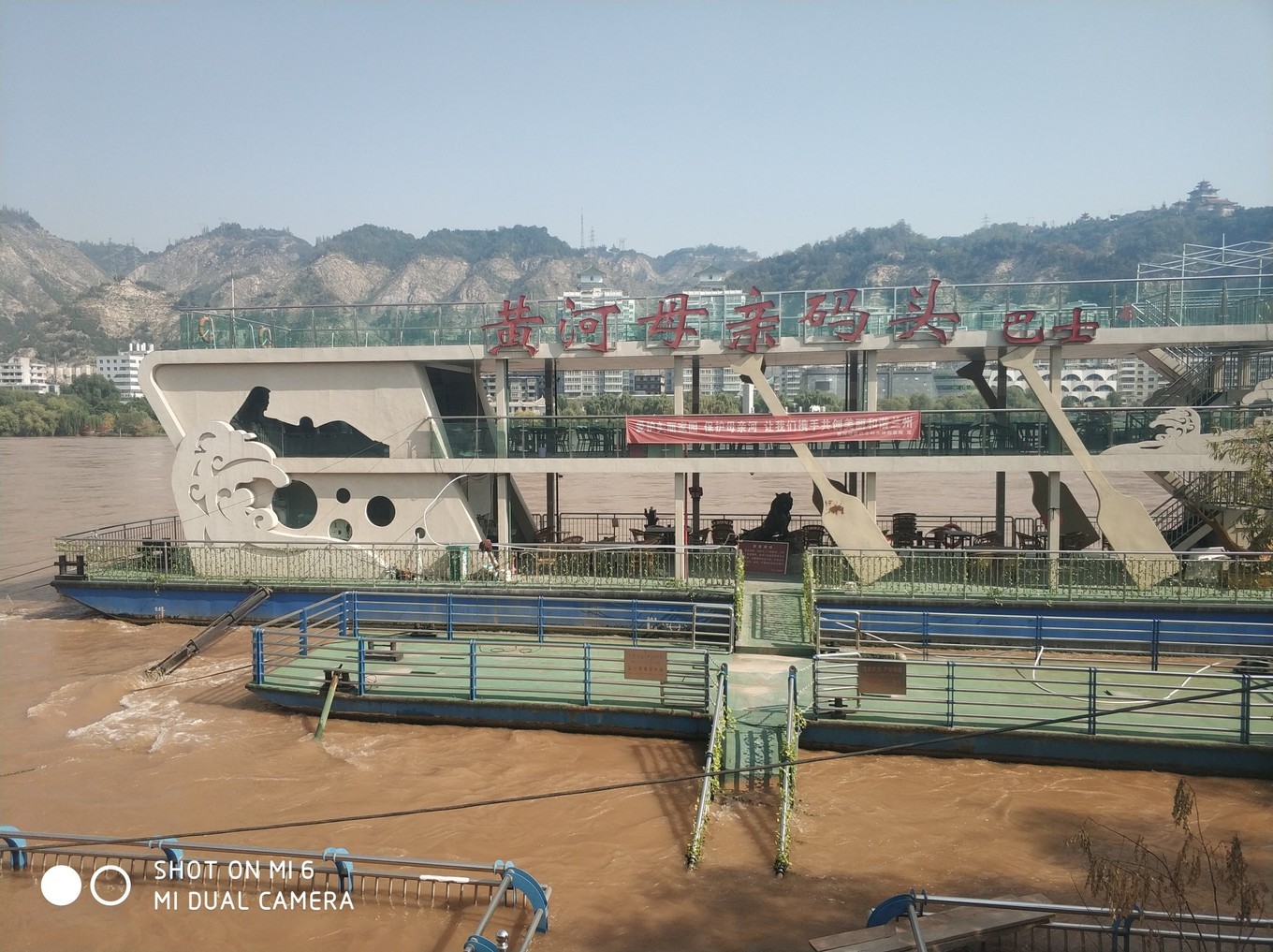 十一期间, 黄河水位上涨, 黄河水车园也被淹了一截,处于关门状态。离黄河水车园不远就是黄河母亲雕像。