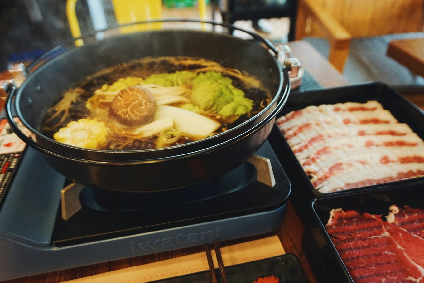 日料店吃寿喜烧自助~到的时候已经快一点了,本来以为人会很多,结果店里只有两三桌,可能是寿喜锅这种方式在郑州知名度还不够吧。