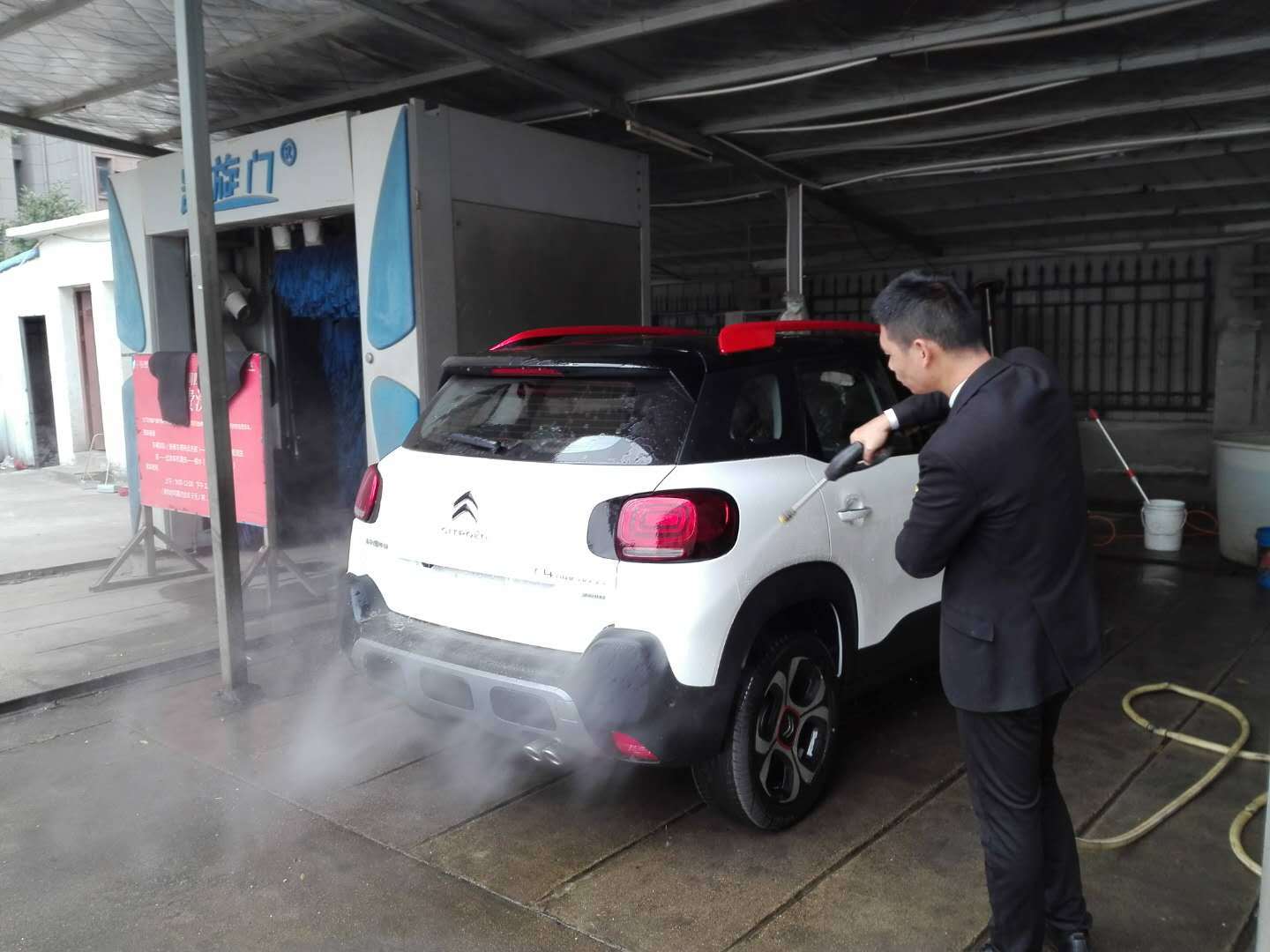 一早来到4S店,检查完车辆,验收装潢完成后,销售顾问把车从车库开到4S店内洗车地方给云逸冲洗,虽然媳妇昨晚没睡到什么,可是今天特别的精神,跟着销售顾问忙里忙外的,看着崭新的云逸出现在我们的眼中,我和媳妇眼里露出幸福的笑容。
