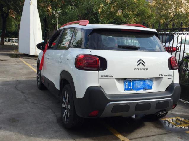 从后侧拍,更能清楚的展现出云逸妹子不一样的车顶行李架,据工作人员介绍,这属当下最流行的悬浮冲浪板式。