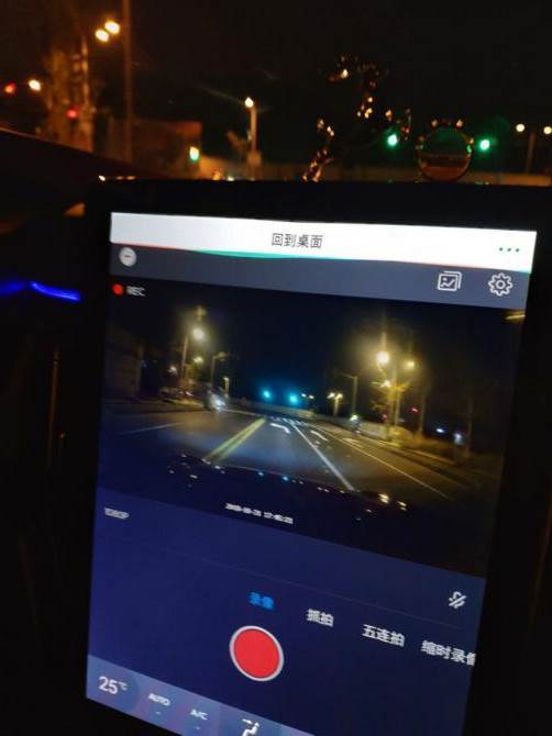 感觉晚上夜景还不错,就打开车上的录像功能,这个录像功能挺好用的,除了录像还可以一件抓 拍,很方便。