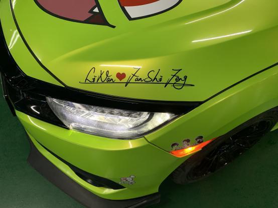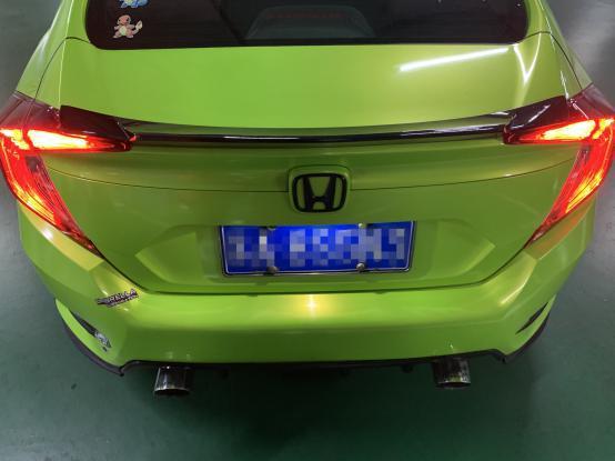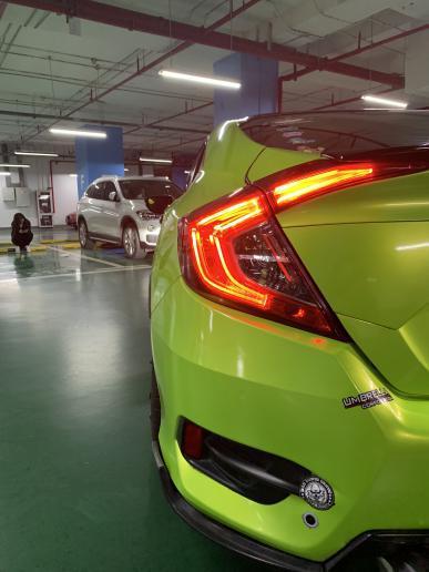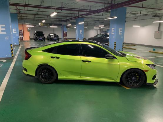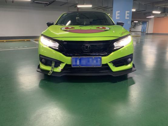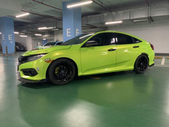 笼统说一说我改装过的东西:Type中网,yofer小鸭尾,前铲,后唇,包角,ERG全段排气,高流量空格,DME外挂,麦斯顿18寸轮毂 ,ps4轮胎,blox锻造轮毂螺丝。幻金绿的色膜。花钱无数,不过效果也很明显。审美各有不同,你可以不承认它的颜值,但你不能否认它的特别,这样的思域开出去再也不担心被人冠上“太街”二字。