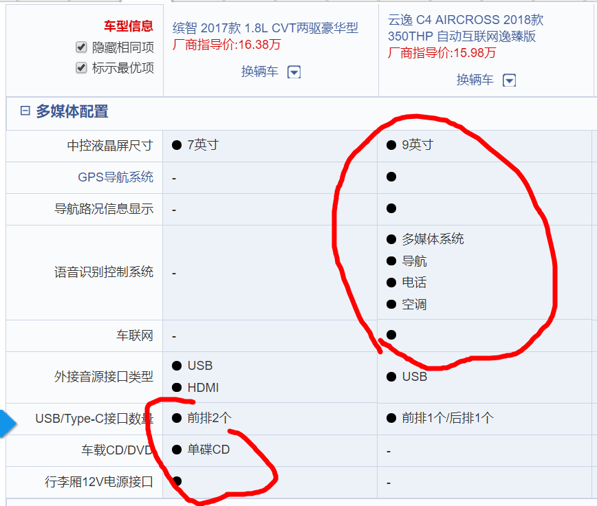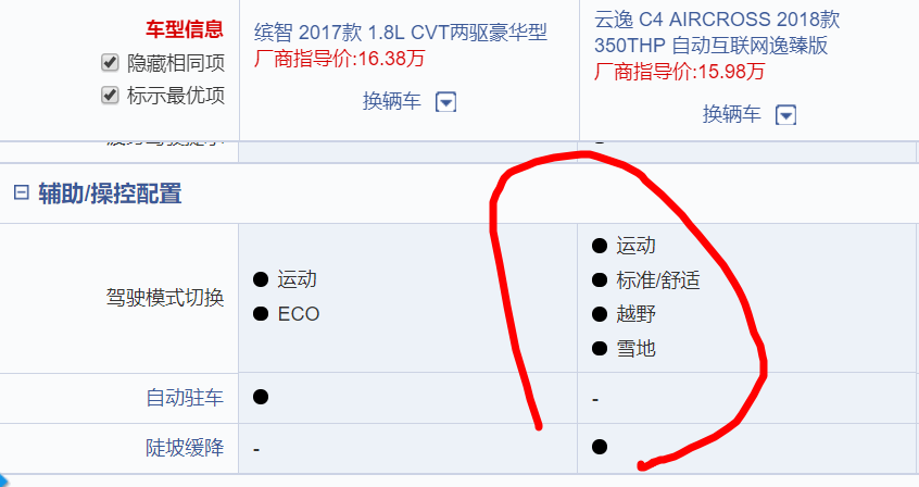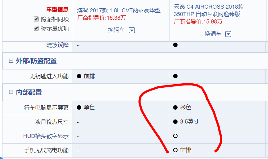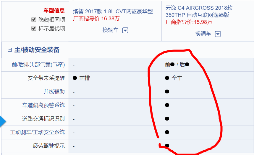 总的来说,这两个就是你有这样,我有那样。空间暂且不说,缤智的后排没云逸宽,但也还够坐。就再看一下配置吧: