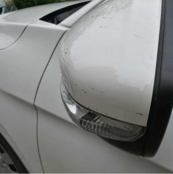 小狮子的左耳之前被我刮过一次,当时还以为刮的很严重,后来用布擦干净之后只有一点浅显的痕迹,不仔细看也也看不出来,所以我就没怎么管了,小狮子的车漆还是很厚实的。