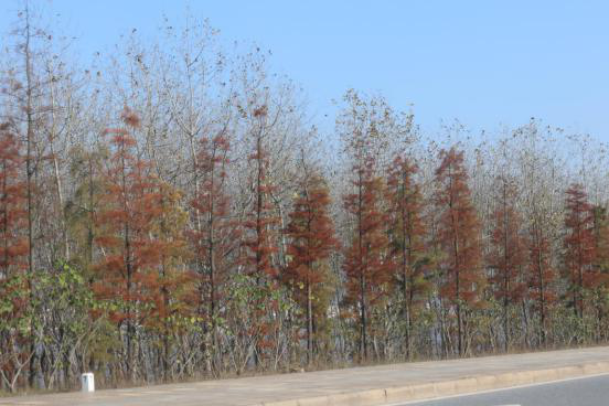 秋风吹红了路的两侧,风景也挺不错的,天窗一开,虽然风有点凉,空气很清新
