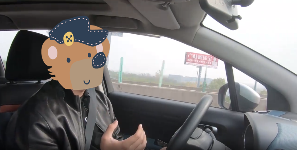 我要单手打方向,这样开要慢一点。。。。。。这车方向轻,指向也准,女生随随便便也能单手玩转