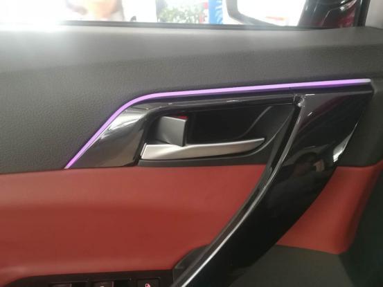 前排空间不错,坐在上面蛮舒服的,座椅可以电动调节,车内的氛围灯也是很吸引眼球,听说有16中不同的颜色呢。