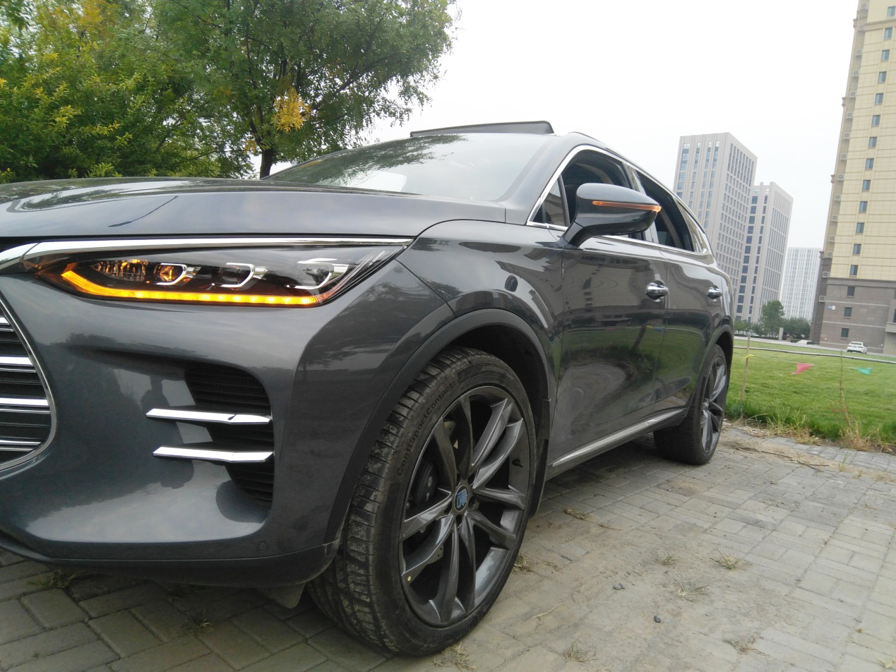 先来说说我对这个车最满意的就是外观了,外观设计可以说是完全颠覆了以往比亚迪外观设计的短板,可以说是翻天覆地的变化,说起外观怕是没有人会说新唐的外观设计不好吧,全新龙脸的的设计,悬浮式的车顶,隐藏的C柱,车身到处都是亮点,全新LED的灯光配置,厚道到无可挑剔。22寸的轮毂,22寸的马牌轮胎,前后通风刹车盘,六活塞布雷博刹车卡钳,你会感觉这些东西配起来不好看。那你就该怀疑自己的审美了。