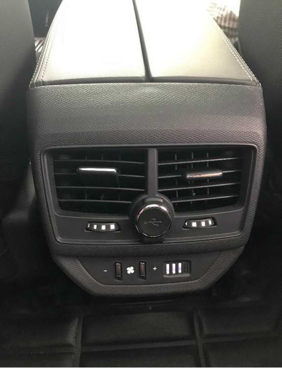 后排出风口,可以自己调节,下面是USB充电接口,再也不用担心没电了。