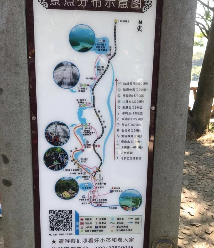 开了大概一个小时十五分钟的车吧,我们就到了增城白水寨,现场买的票。先在景区大门留照一张,“万阶梯直上九霄揽胜江山如画”,这9999天南第一梯就是我今天的目标。