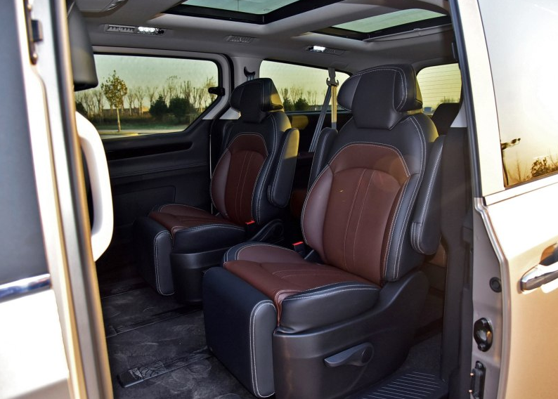 还有这个第二排的老板座椅,配置了腿托,很适合跨省的长途行驶,但是没有电动调节还是稍微有些每种不足