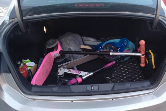 【空间】后排很多时候都要加装两个安全座椅,尾箱稍后会放图,小孩子的滑板车两辆是常规装备。带俩宝的东西,反正什么都得两份。空间家用的话是妥妥的,头部空间极佳。本人1米78调整好前排的话,坐到后排还有两拳的腿部空间。后排座椅角度也还可以,可以有躺享的即视感。中间位置如果再有个头枕就好了,有时候后排坐三个大人,中间就不太好受。