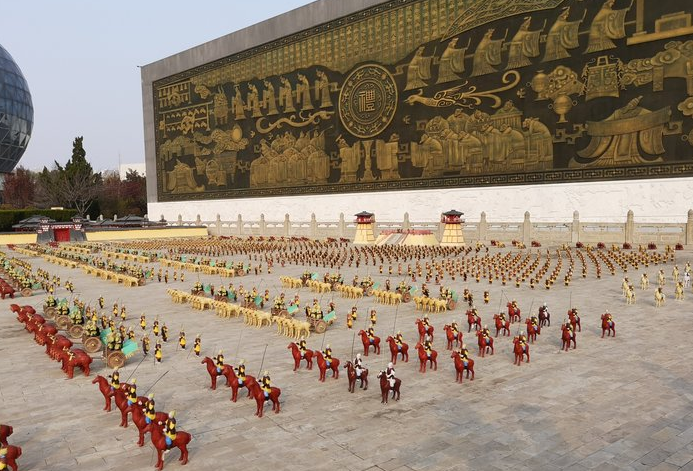 这是我最喜欢的一处,一整片春秋战国时期的兵阵,放眼所及都是士兵、战马、战车之类的,雕刻的栩栩如生,小孩看得也是津津有味。